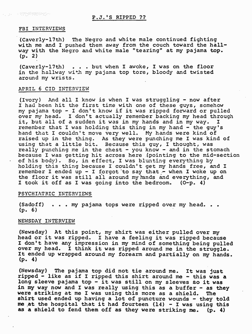 May 30, 1984: Excerpts from Attachment to Affidavit of Laura Lipsitz, re: Statements by Jeffrey MacDonald about his pajama top