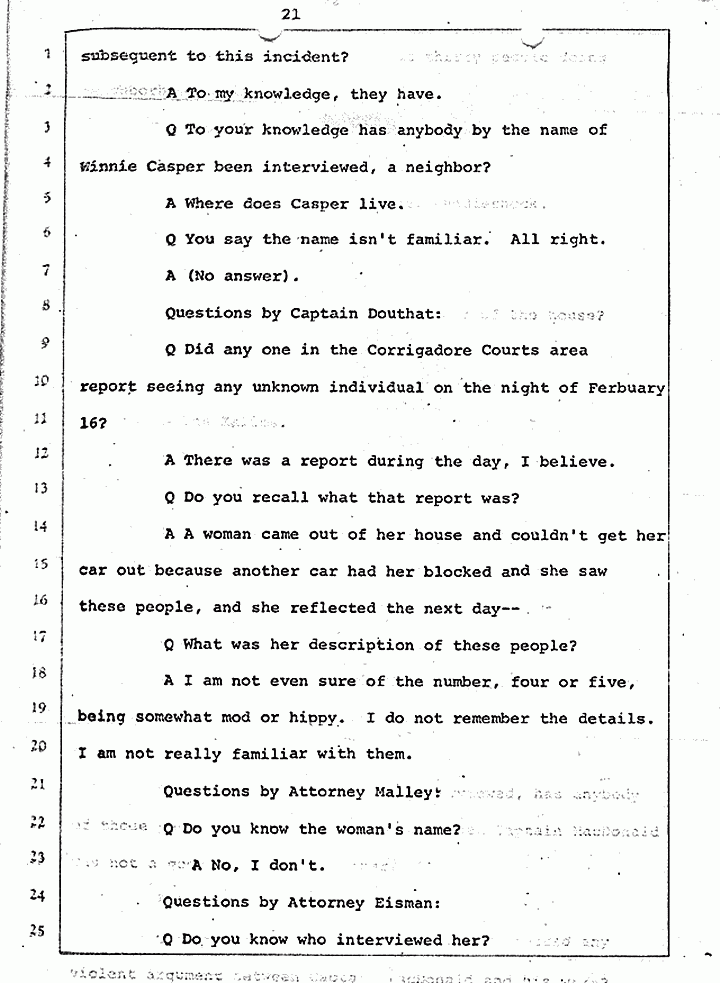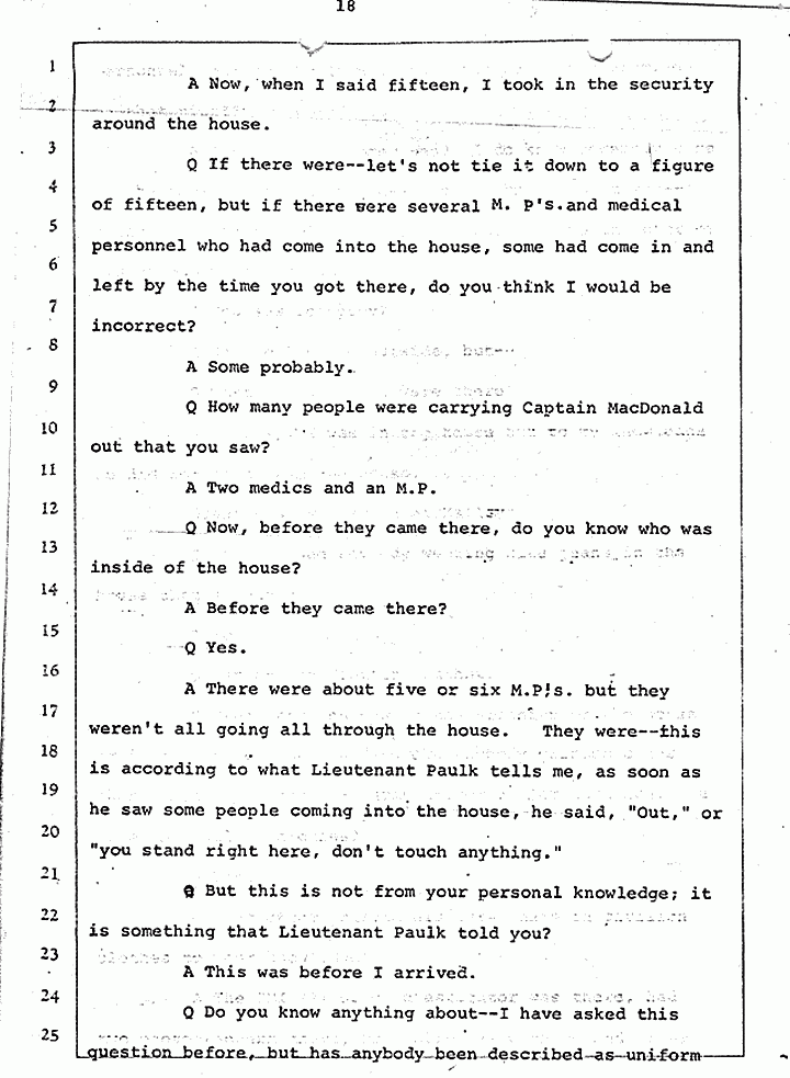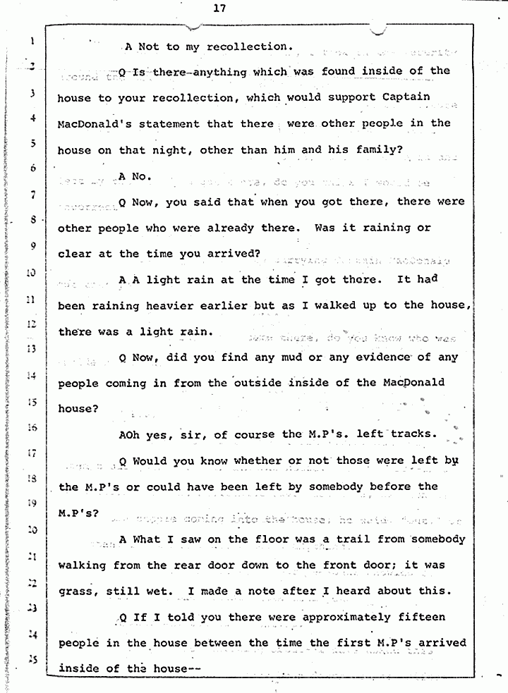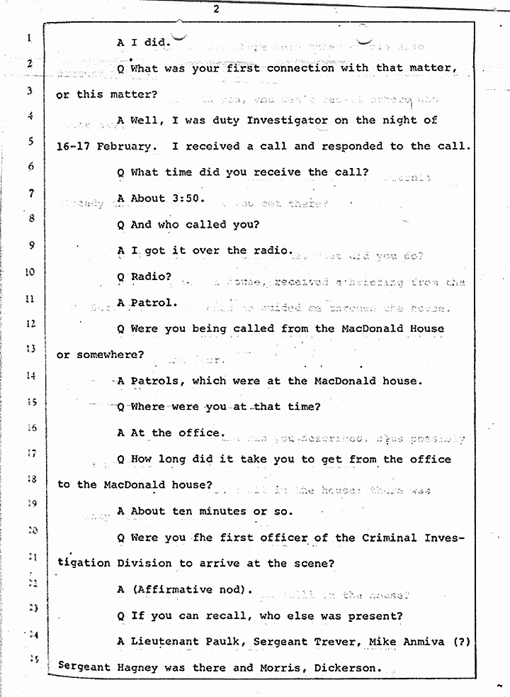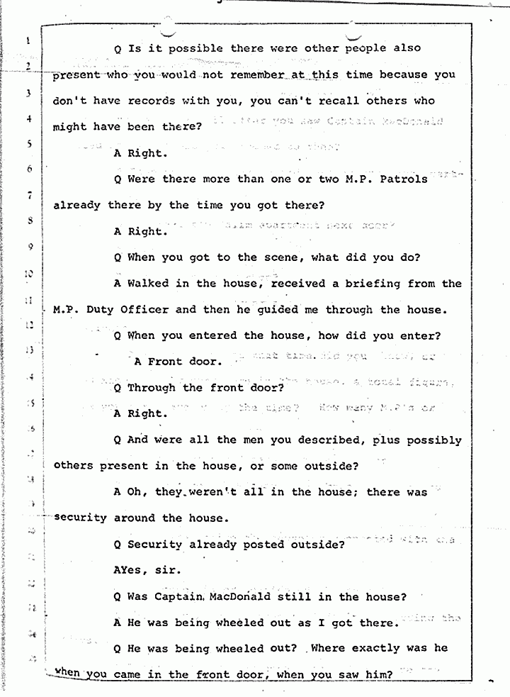 Q Calling your attention to February 17, 1970, did you have occasion to become involved in the matter which we are discussing, United States vs. Captain Jeffrey MacDonald?