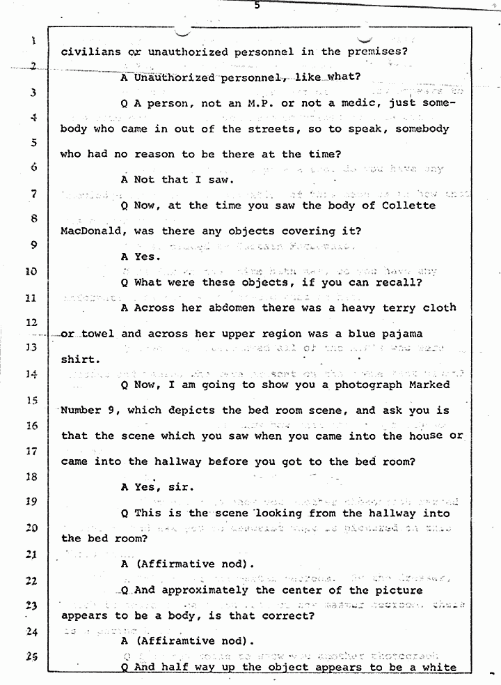 Q Now, at the time you saw the body of Colette MacDonald, was there any objects covering it?