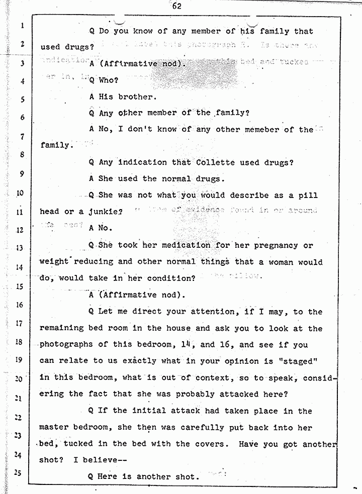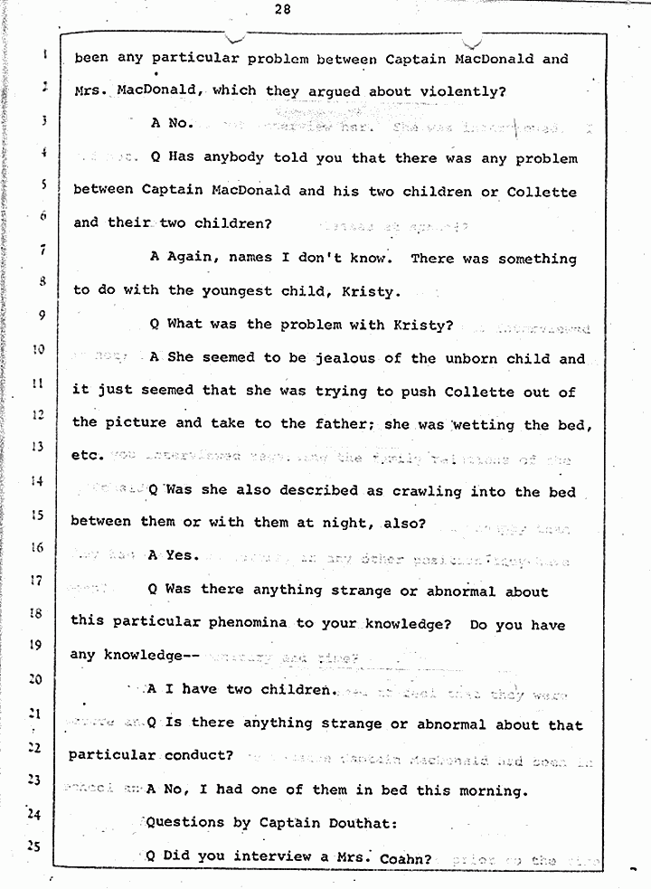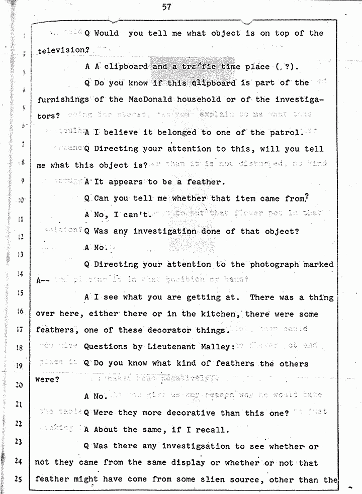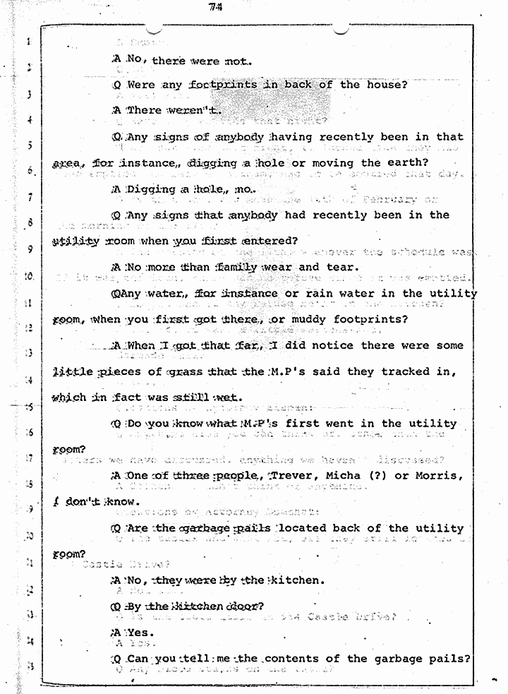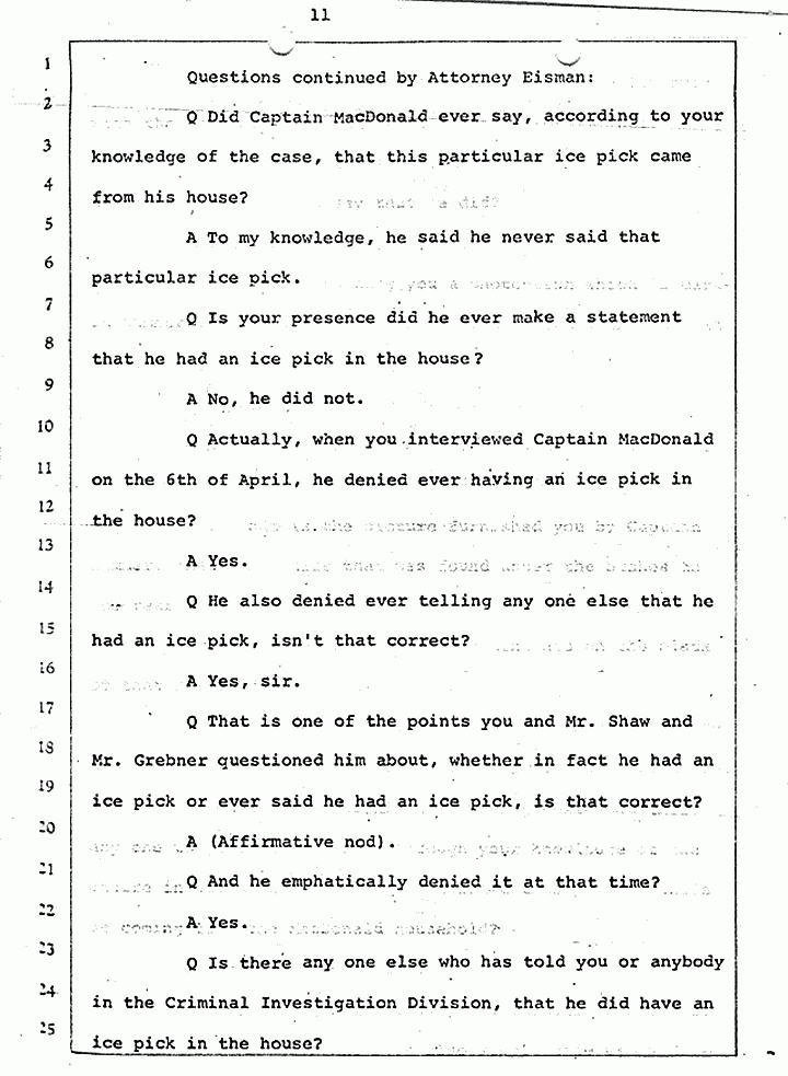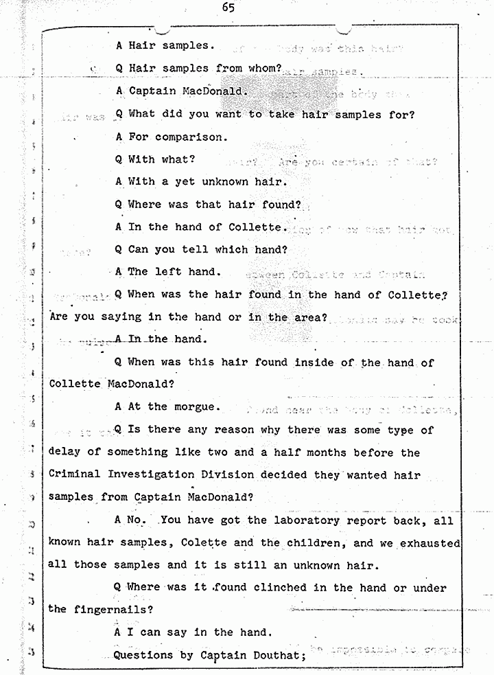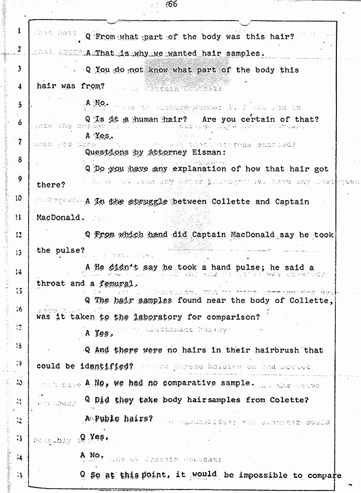 Q Is it consistent with your theory of Captain MacDonald have probably been in a hurry, after having committed these crimes and therefore wounding himself before he called the police, and afraid the neighbors may have heard, that he would take the time and effort to flush the toilet the number of times it would take to completely get rid of this evidence?