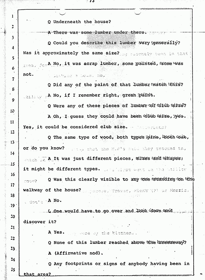 Q Did you find any blood or anything in the utility room?