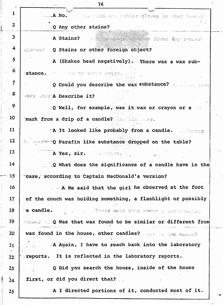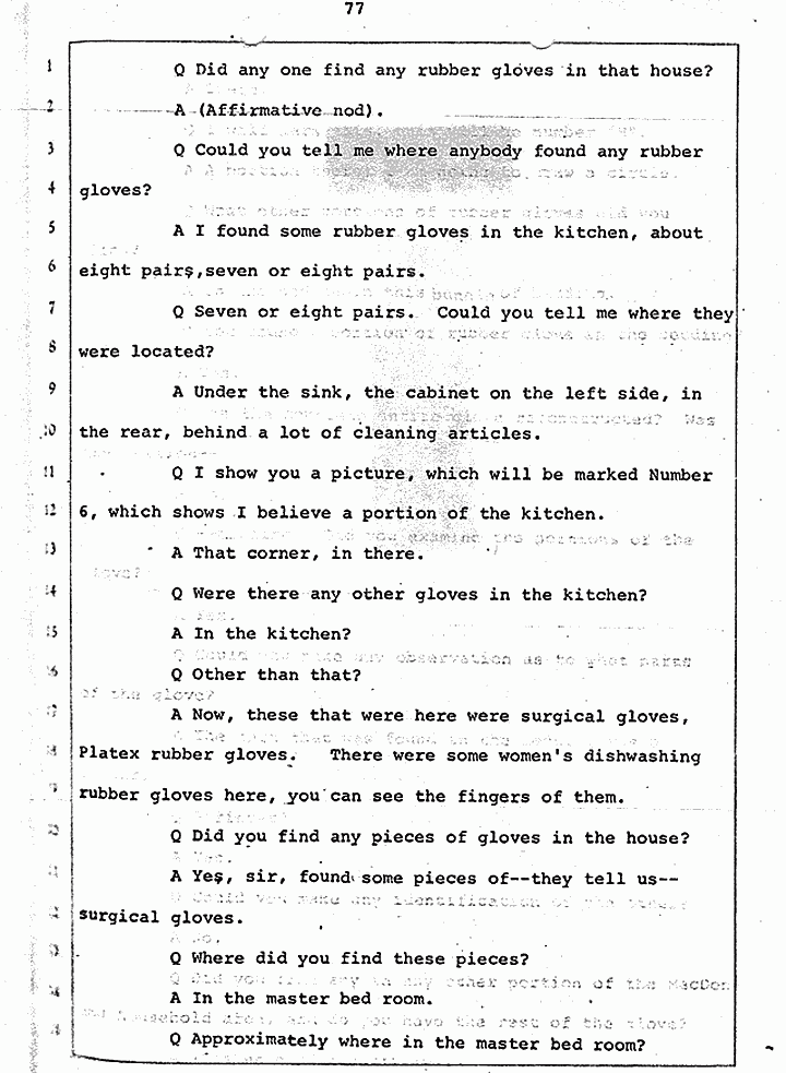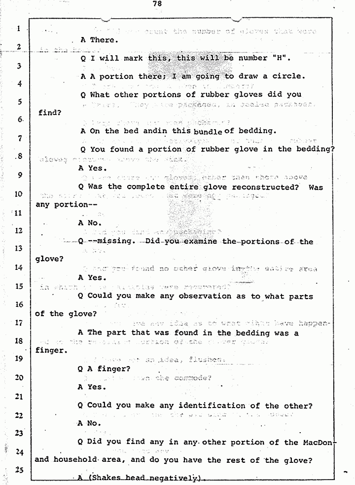 Q Did you find any in any other portion of the MacDonald household area, and do you have the rest of the glove?