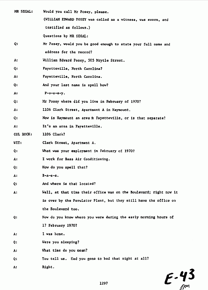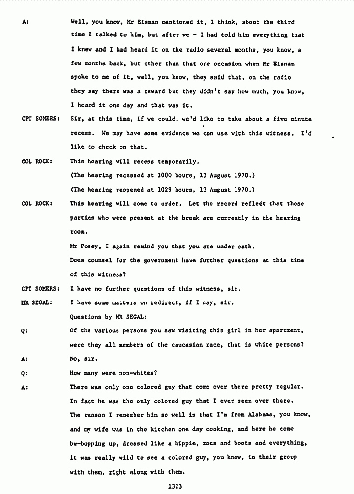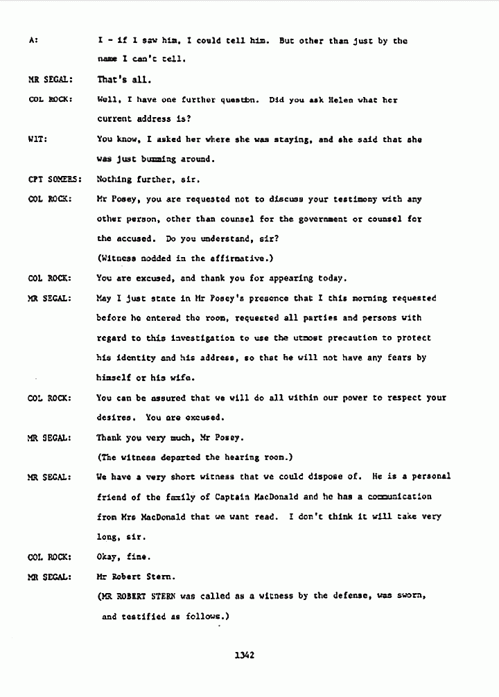 COL ROCK: Mr. Posey, you are requested not to discuss your testimony with any other person, other than counsel for the government or counsel for the accused. Do you understand, sir?