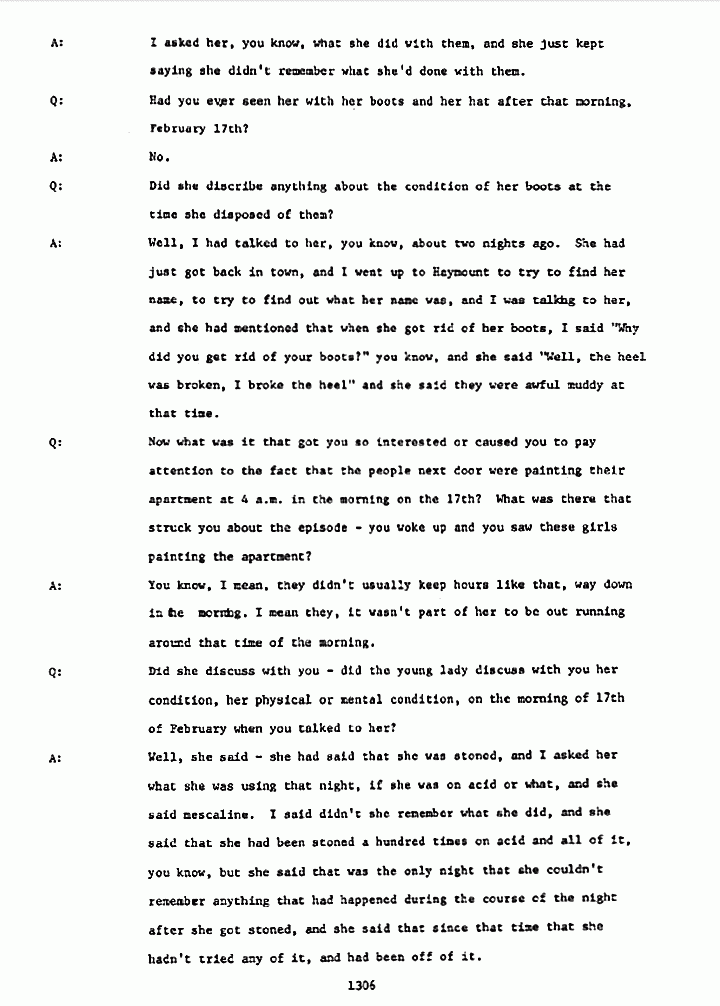 WITNESS: You know, I asked her where she was staying, and she said that she was just bumming around.