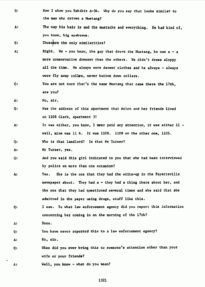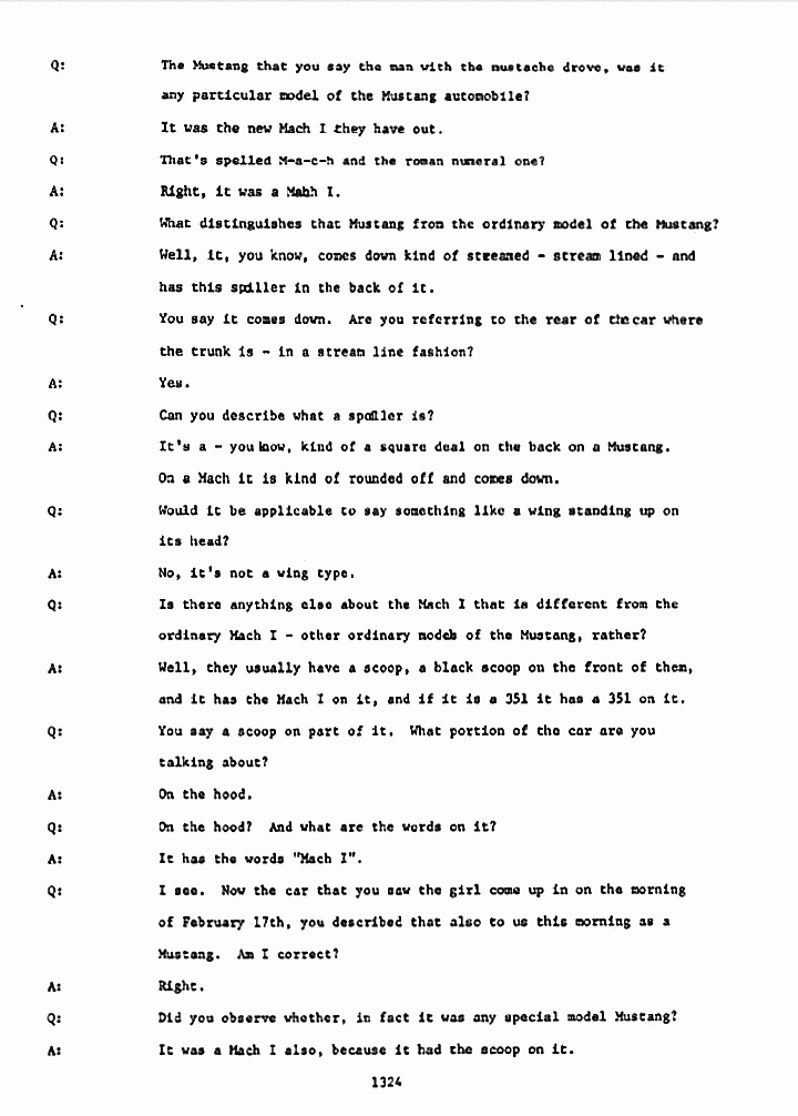 Q Let me back up, if I may, Mr. Posey. How long had you seen this gal around or known her, the one you are describing on this morning, that you saw getting out of the Mustang?