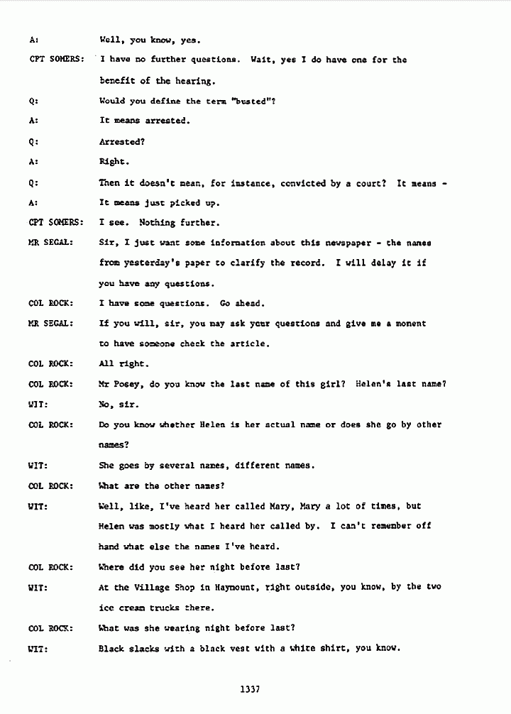 COL ROCK: Mr. Posey, do you know the last name of this girl? Helen's last name?