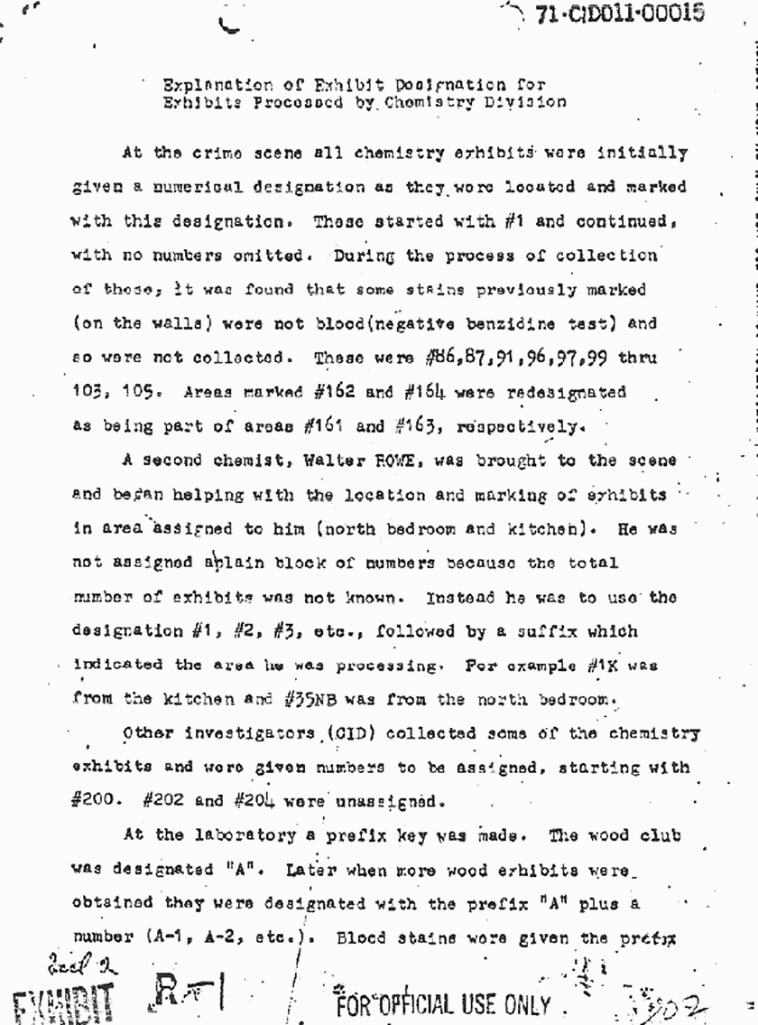 for Exhibits Processed by Chemistry Division