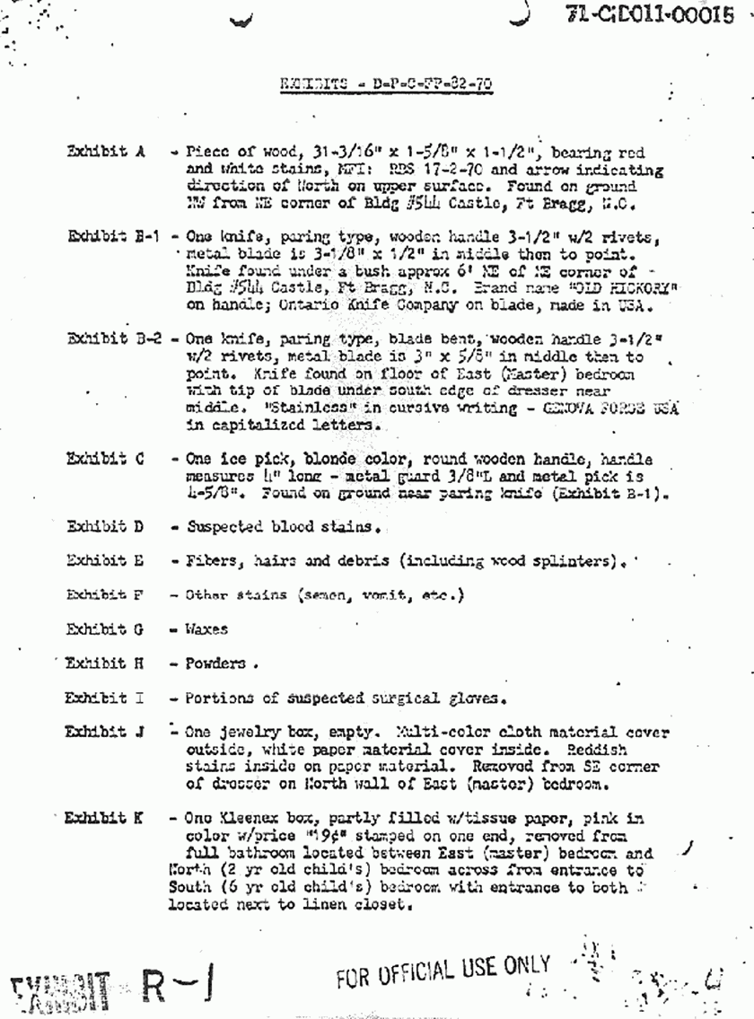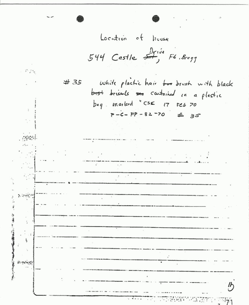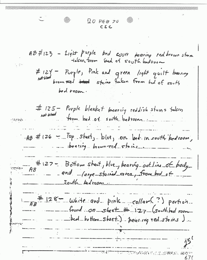 re: evidence collected/processed Feb. 17-21, 1970