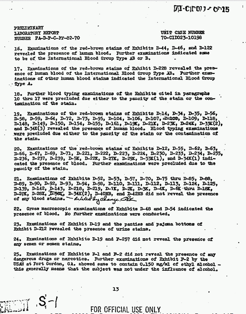 April 6, 1970: USACIL Preliminary Report FA-D-P-C-FP-82-70, p. 15 of 17