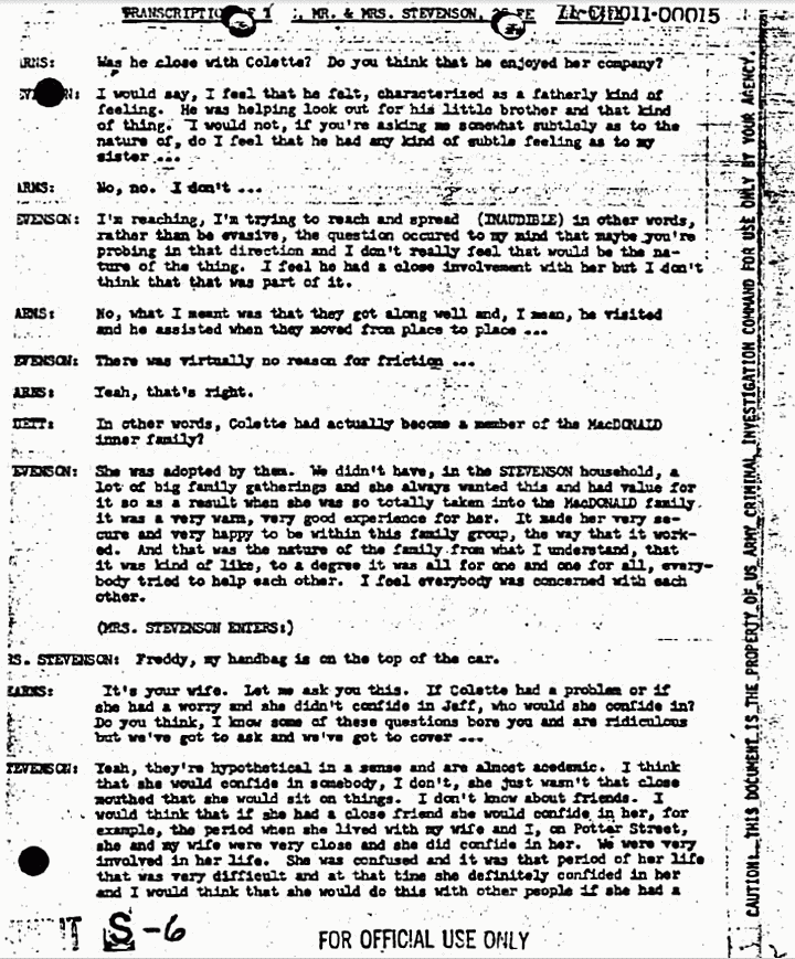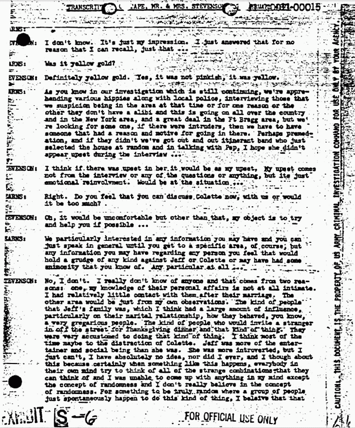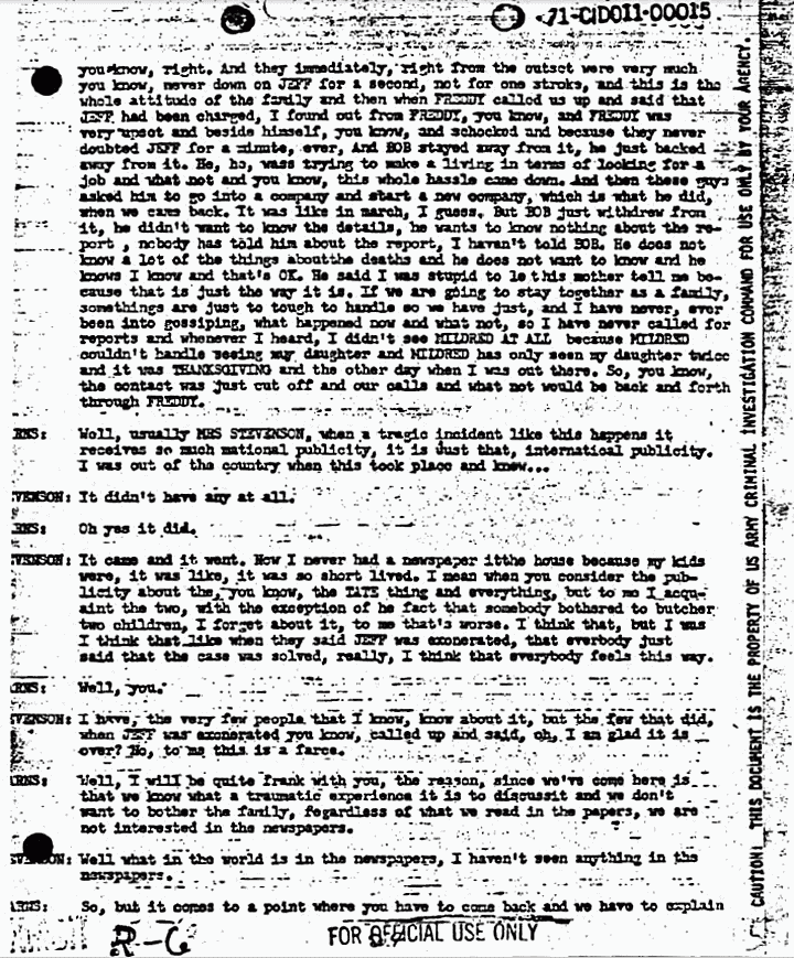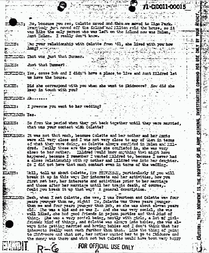 February 9, 1971: Interview of Robert and VivianStevenson by Peter Kearns and Col. Jack Pruett, p. 15 of 16