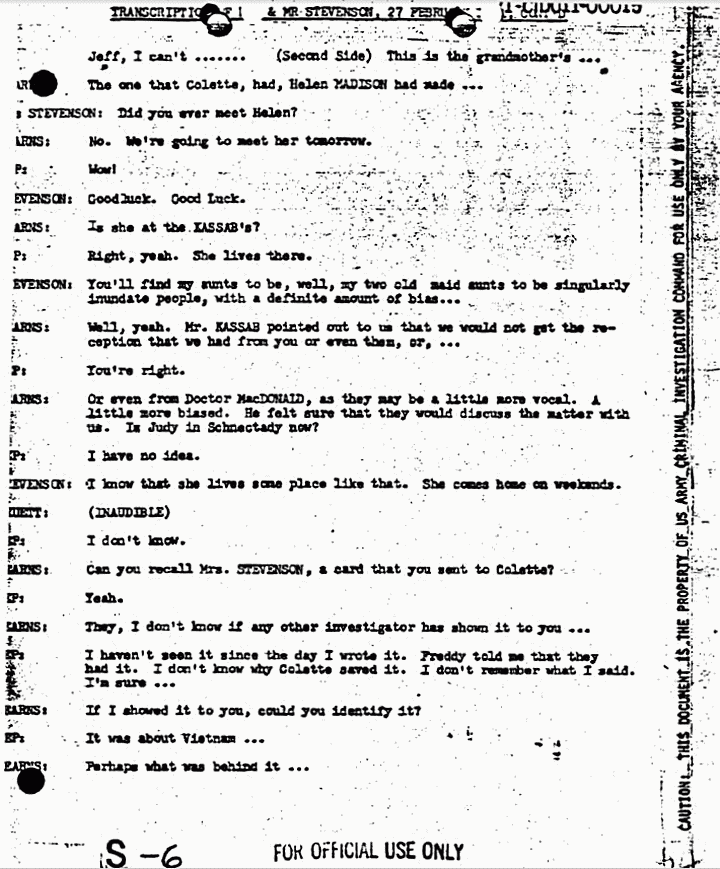 February 9, 1971: Interview of Robert and VivianStevenson by Peter Kearns and Col. Jack Pruett, p. 16 of 16