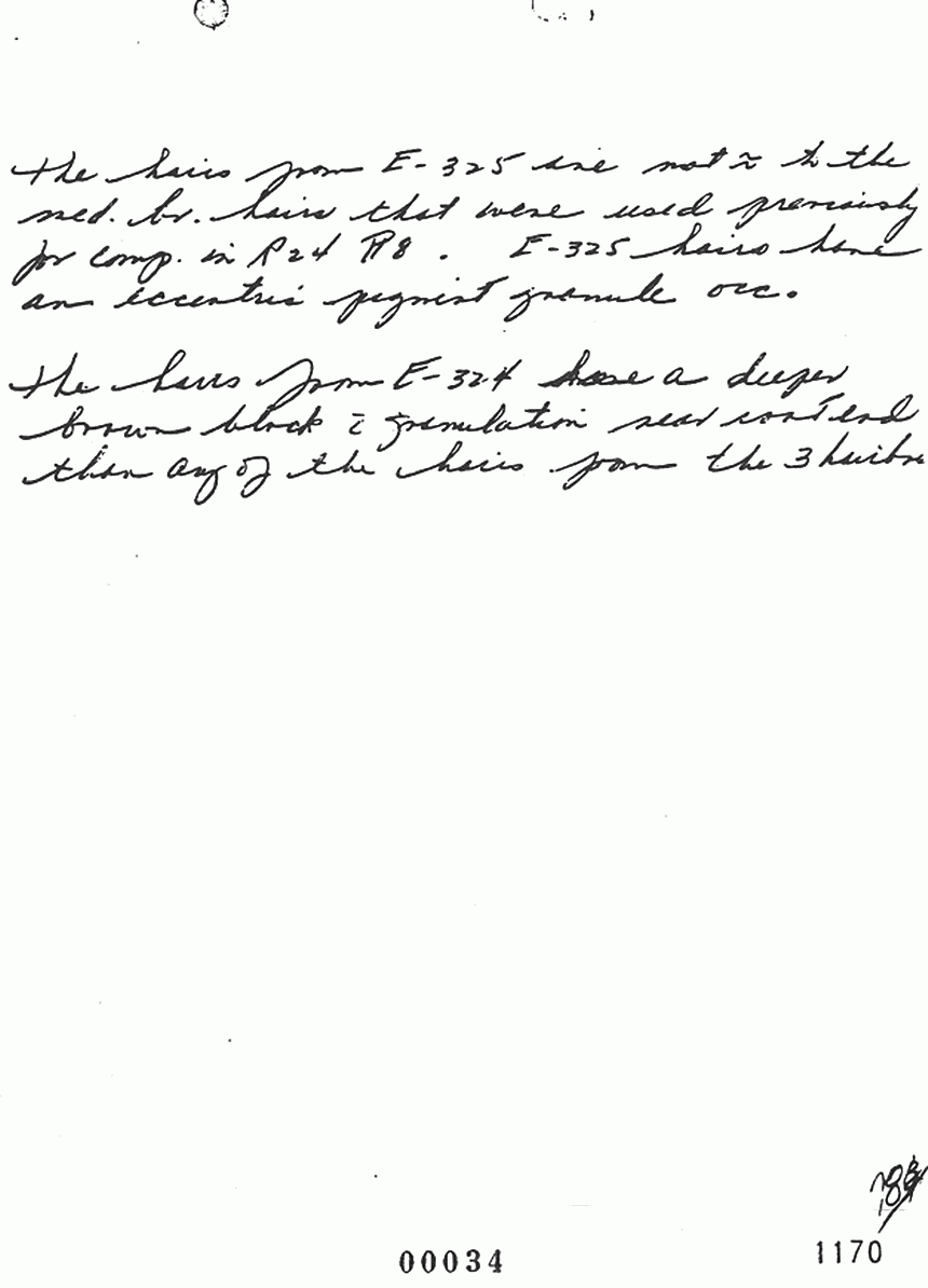 May 6-25, 1971: Notes, worksheets and lab reports re: CID chemist Janice Glisson's examinations of hair samples, p. 2 of 10