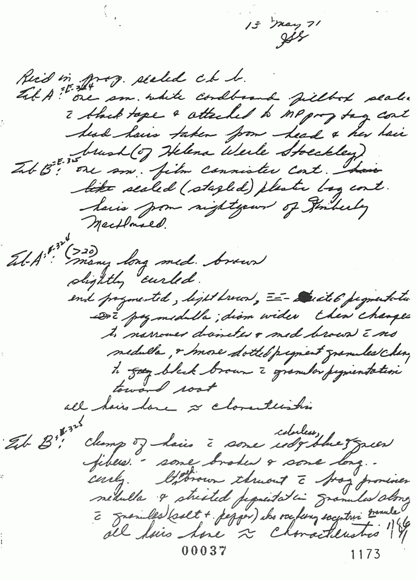 May 6-25, 1971: Notes, worksheets and lab reports re: CID chemist Janice Glisson's examinations of hair samples, p. 9 of 10