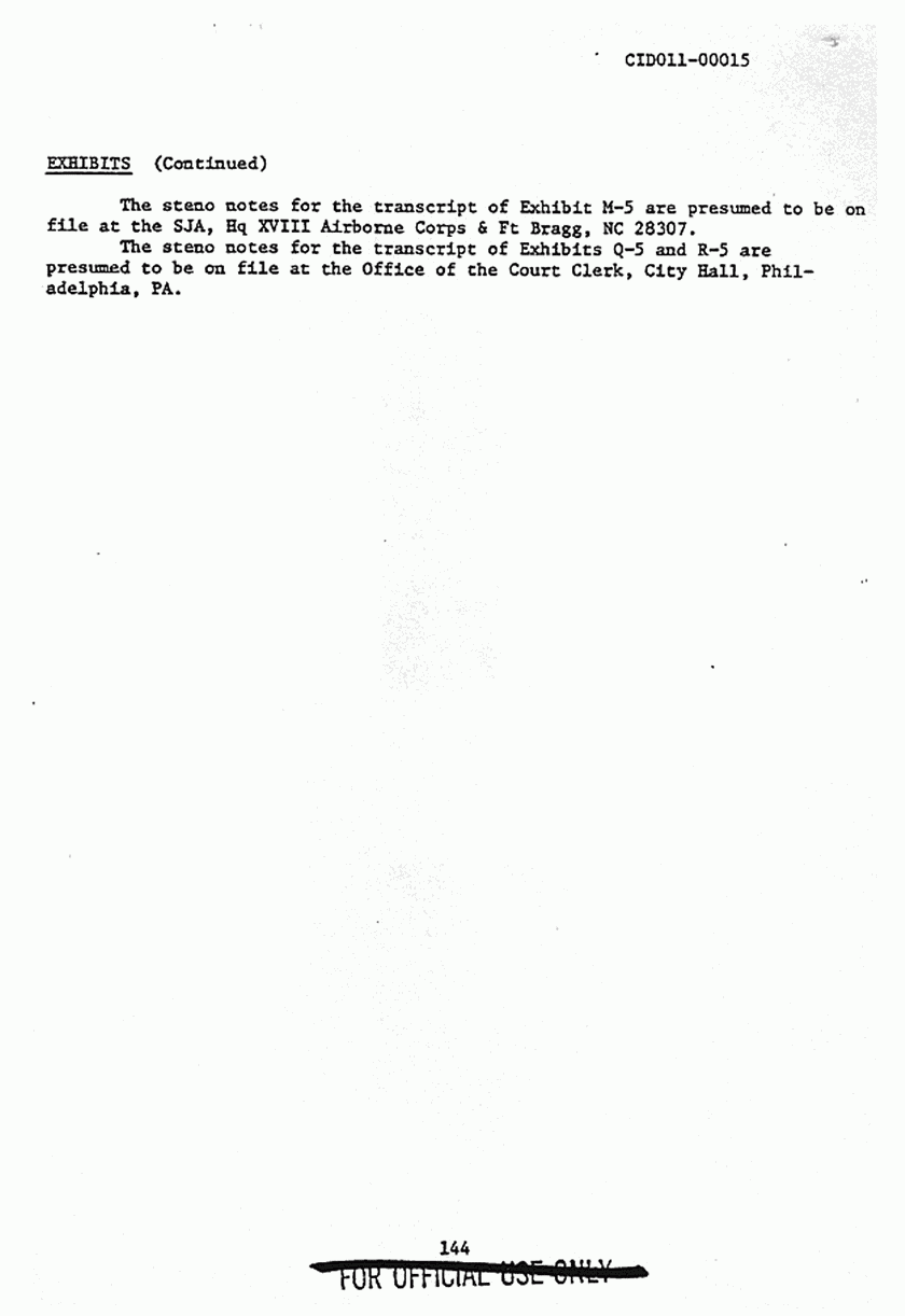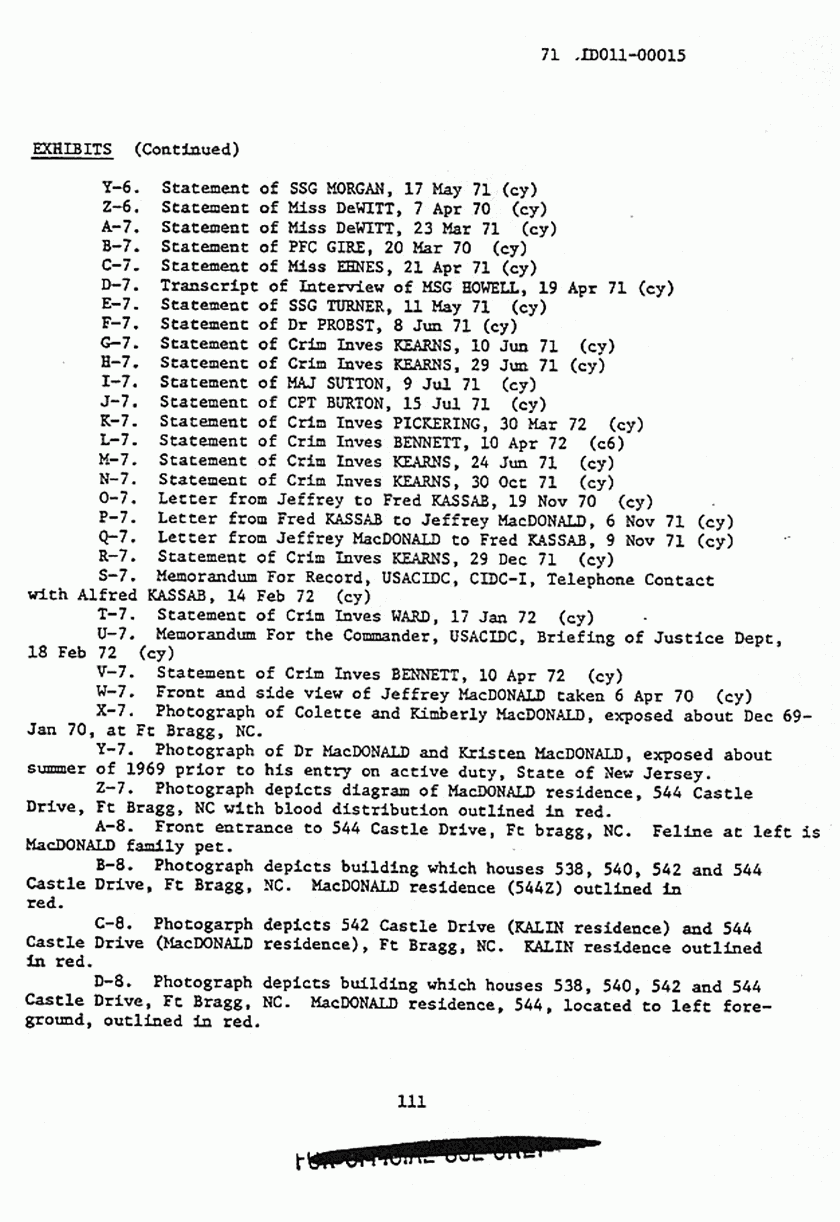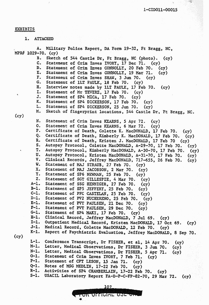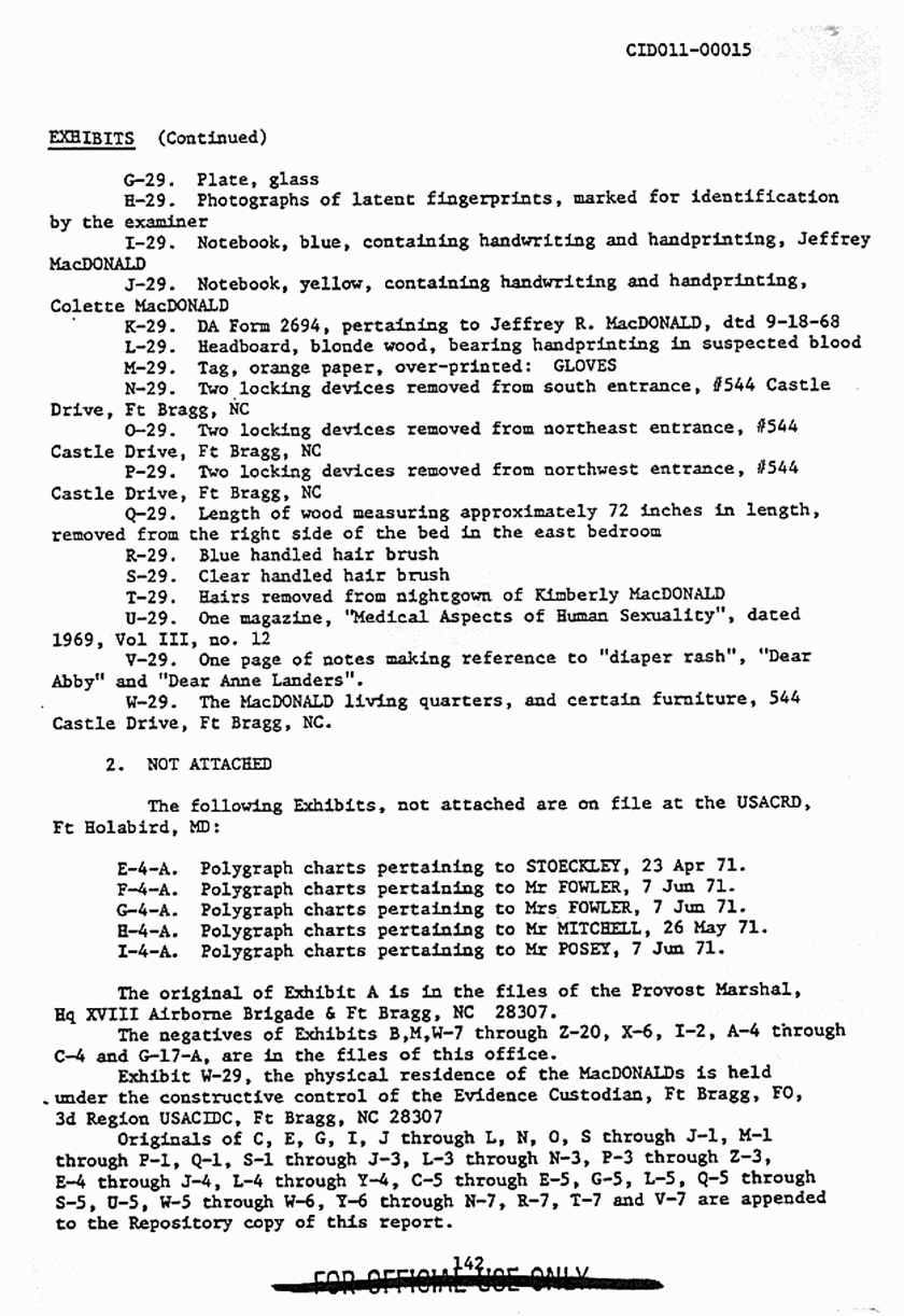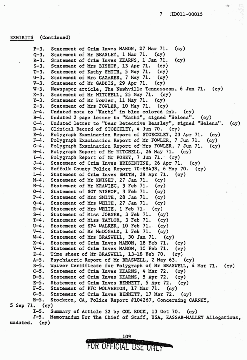 CID Investigation Final Report: Feb. 17, 1970 - April 10, 1972, Part 2 (Exhibits)