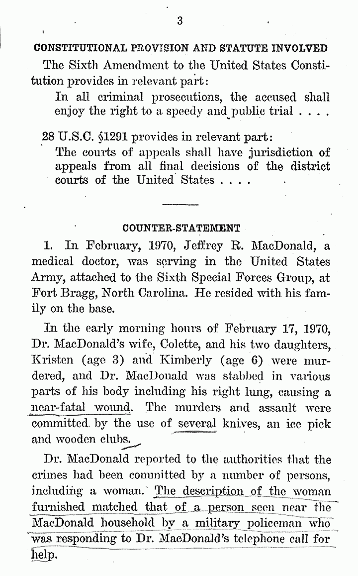 Brief for Jeffrey MacDonald in Opposition, p. 3 of 37