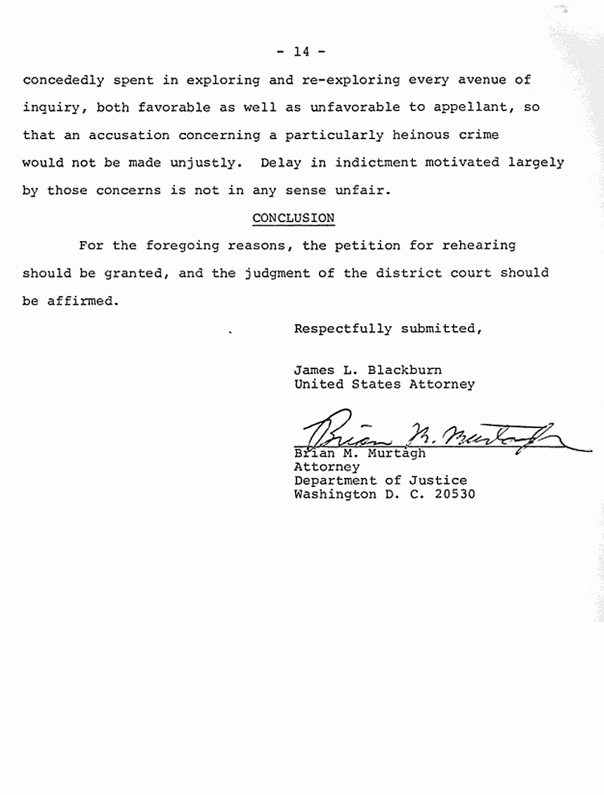 Petition by U. S. for Rehearing With Suggestions for Rehearing en banc, p. 14 of 15