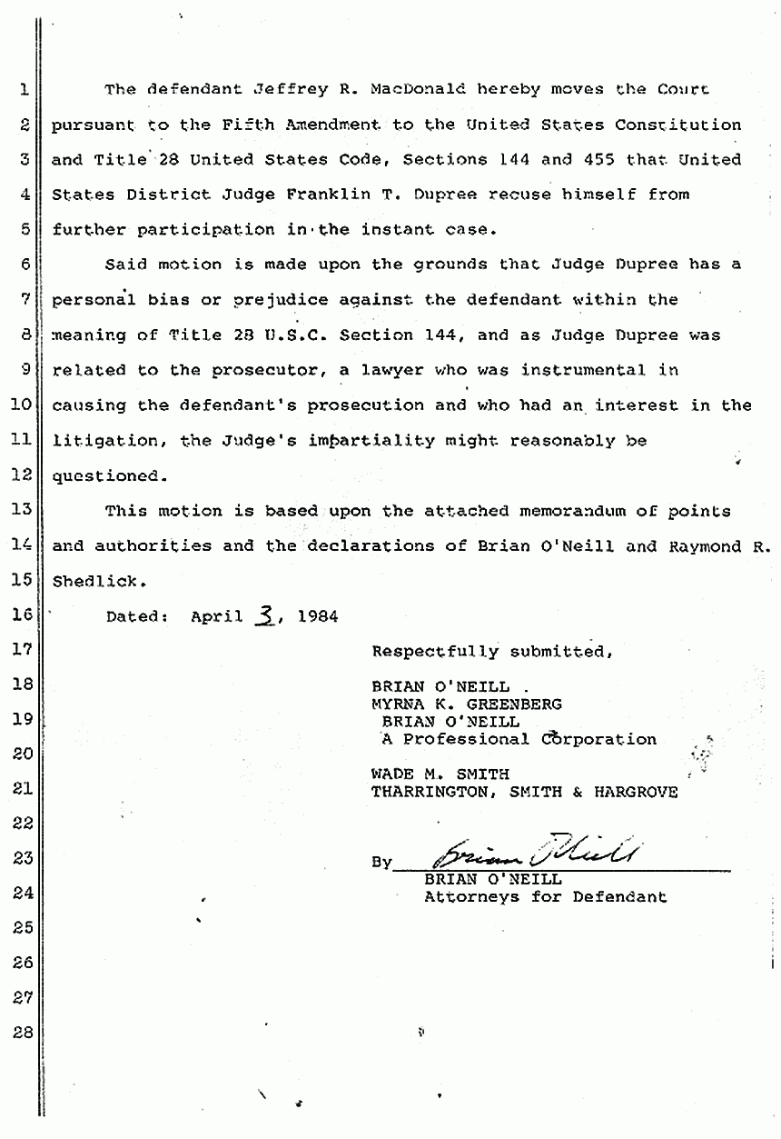 Motion by Jeffrey MacDonald for Recusal of Judge Dupree, p. 26 of 28