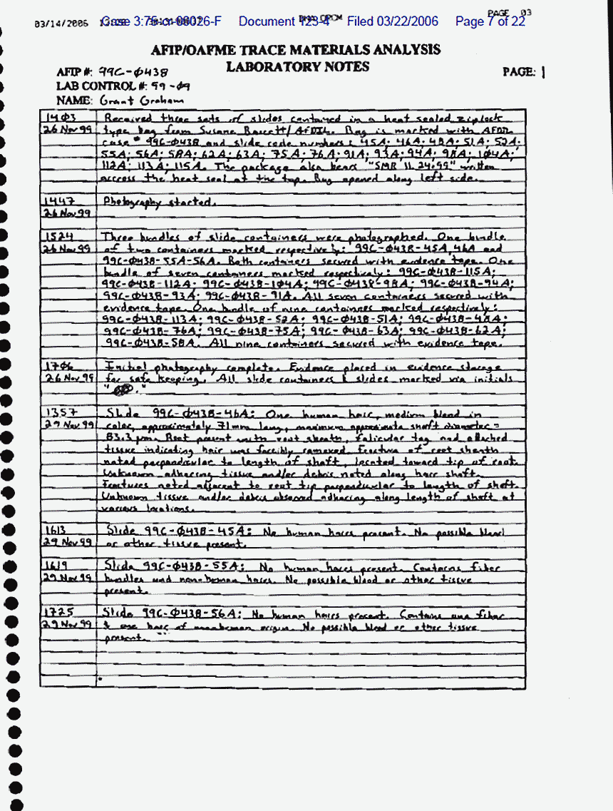 AFIP/AFME Forensic Trace Materials Analysis Laboratory Notes of Grant Graham, p. 7 of 8