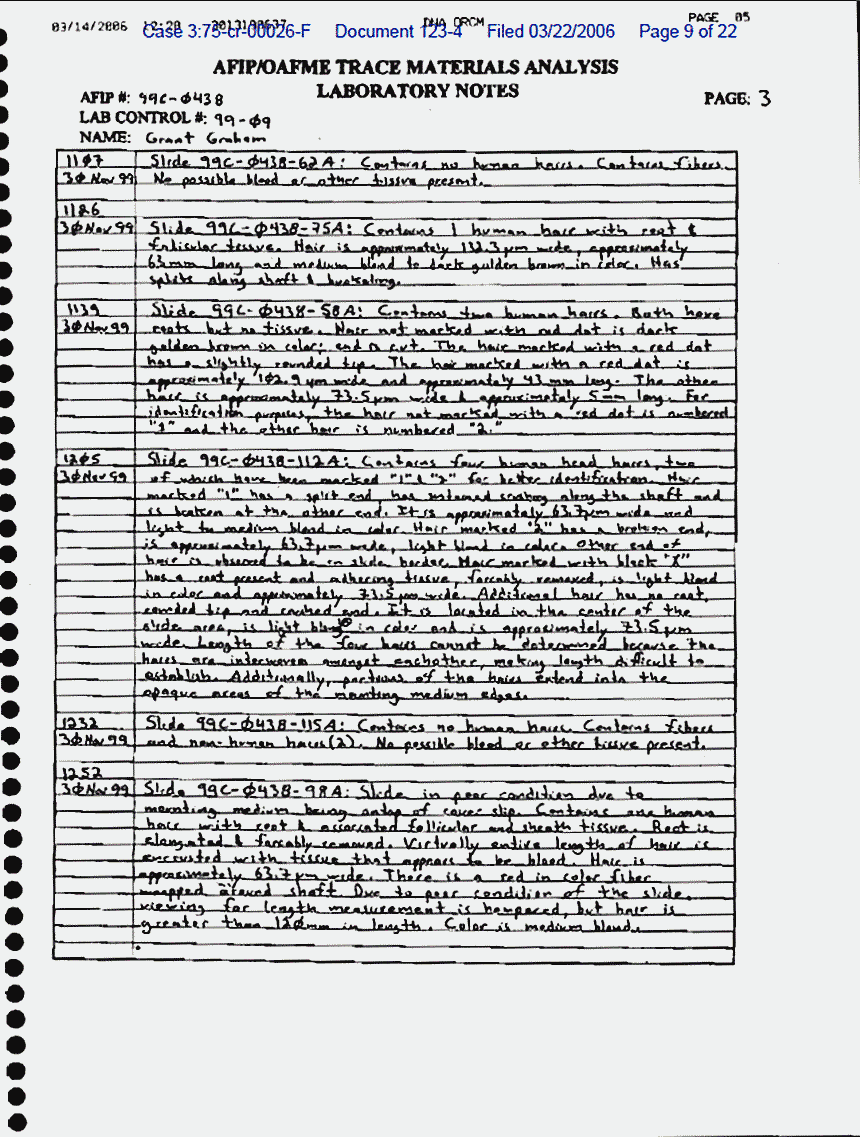 AFIP/AFME Forensic Trace Materials Analysis Laboratory Notes of Grant Graham, p. 3 of 8