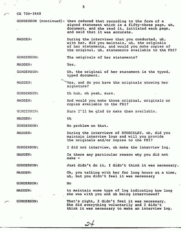 MADDEN: During the interviews that you conducted, uh, with her, did you maintain, uh, the originals of her statements, and would you make copies of the original, uh, statements available to the FBI?