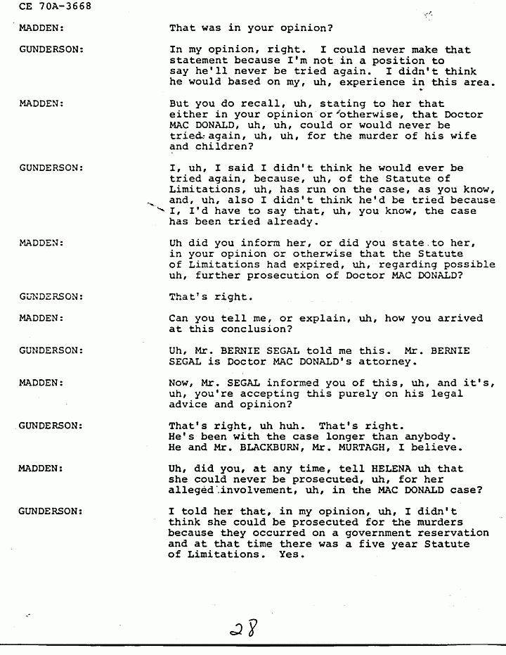 MADDEN: Uh, for the record, Mr. GUNDERSON, at this particular point, uh, would you again, uh, please name uh the seven people, as being present during the MACDONALD murders.