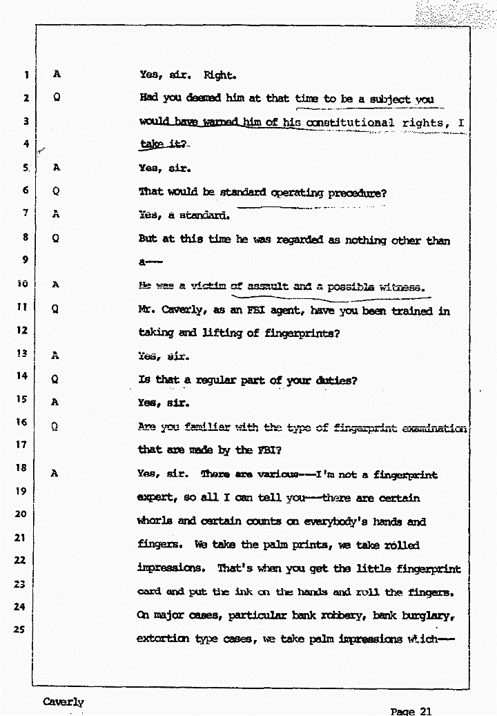 Q Mr. Caverly, as an FBI agent, have you been trained in taking and lifting of fingerprints?