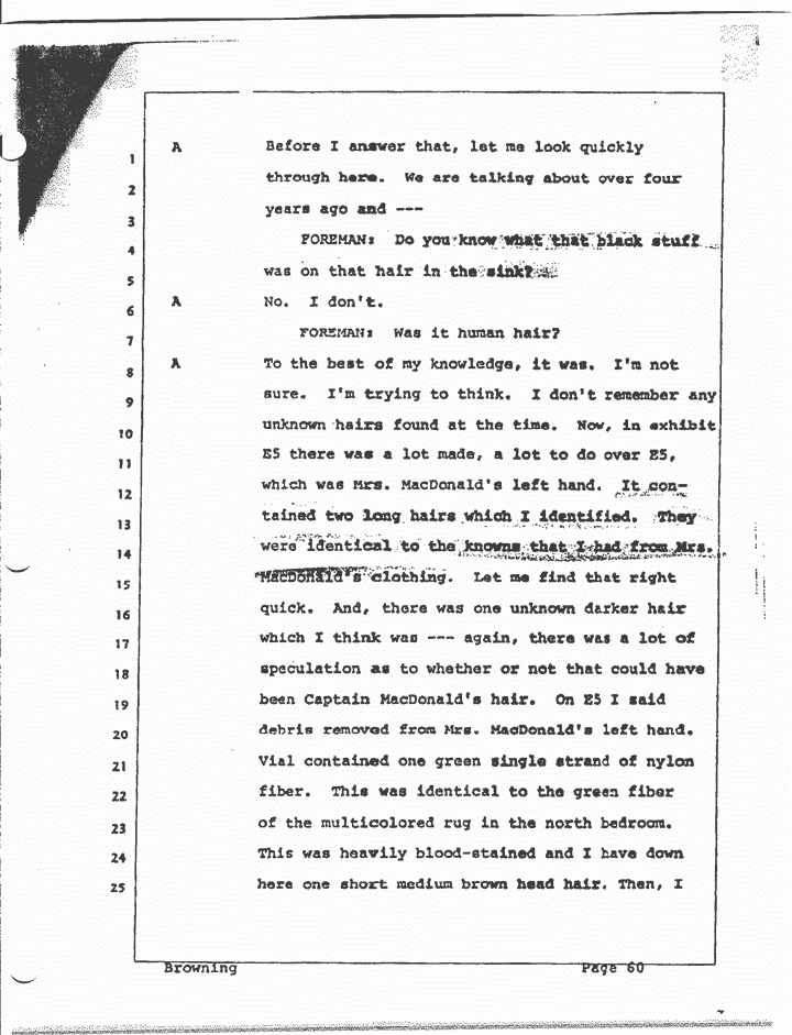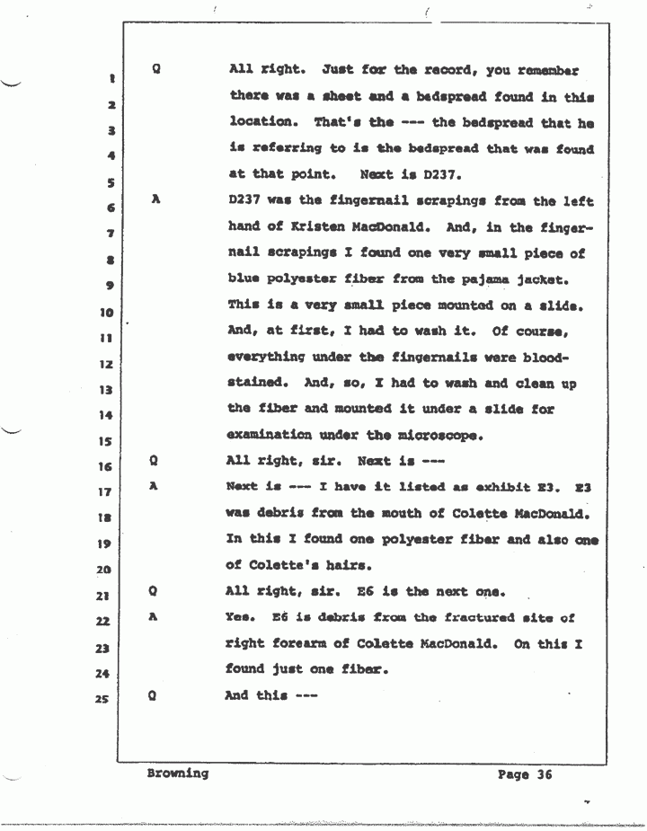 FOREMAN: The one that was on Colette MacDonald's body, and, I think you said, it was --