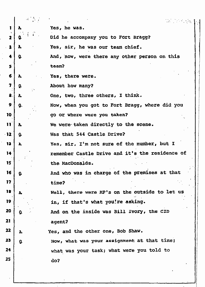 MR. WOERHEIDE: Before I ask him some more questions, I want to read from the testimony here of Mr. MacDonald before the grand jury.