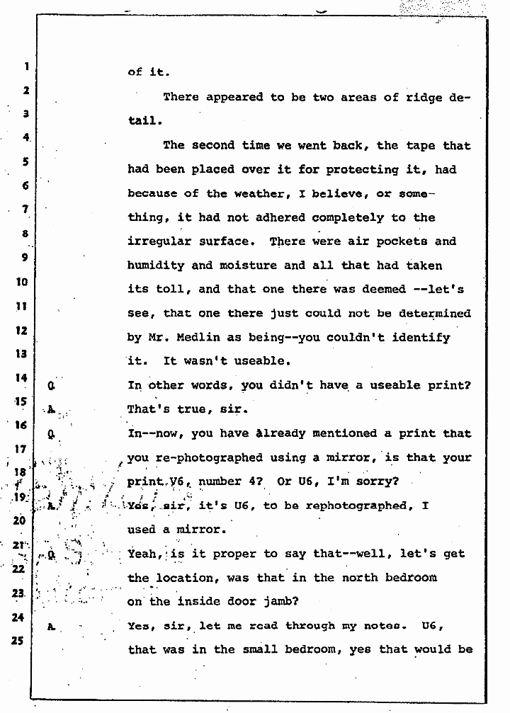 Q That's the one with the mirror and there were not sufficient points for identification purposes. On U6, there were sufficient points?