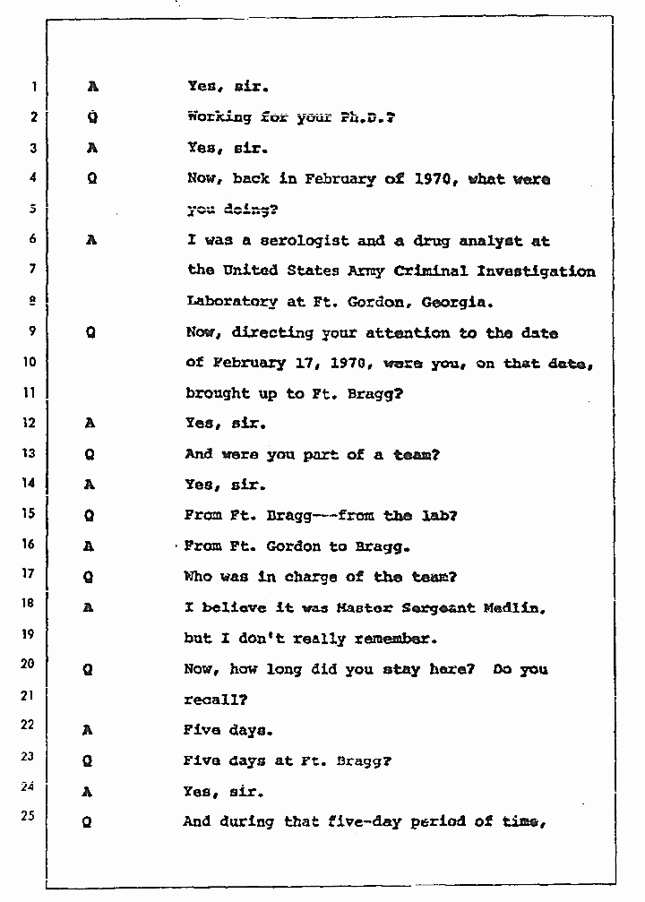 Q Now, directing your attention to the date of February 17, 1970, were you, on that date, brought up to Ft. Bragg?