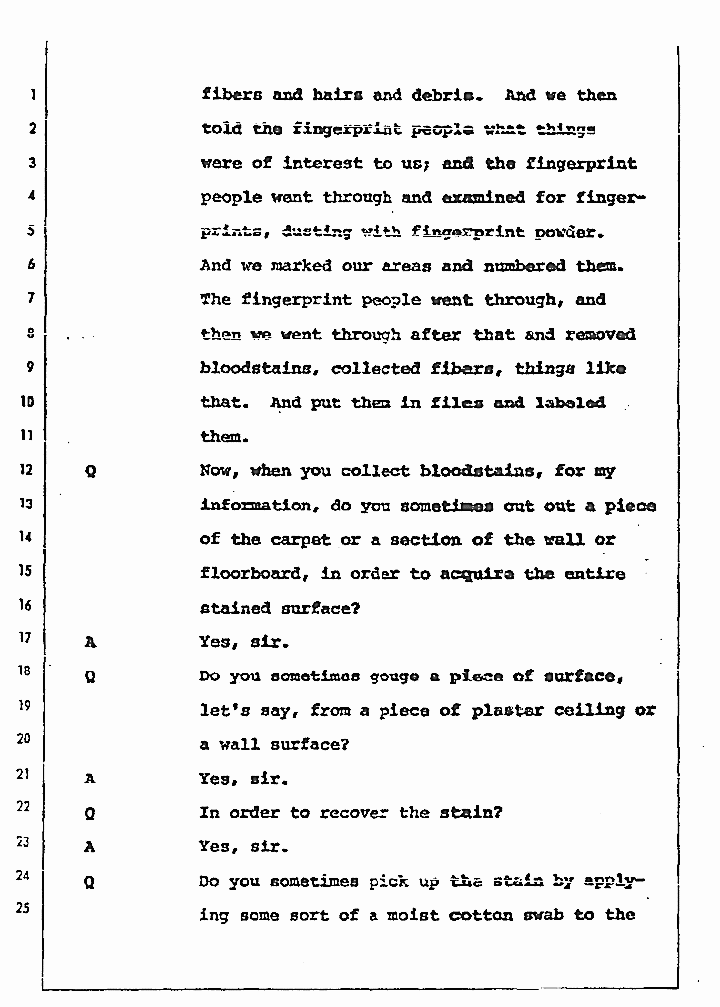 Q Now, when you collect bloodstains, for my information, do you sometimes cut out a piece of the carpet or a section of the wall or floorboard, in order to acquire the entire stained surface?