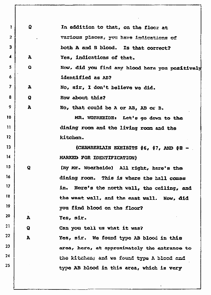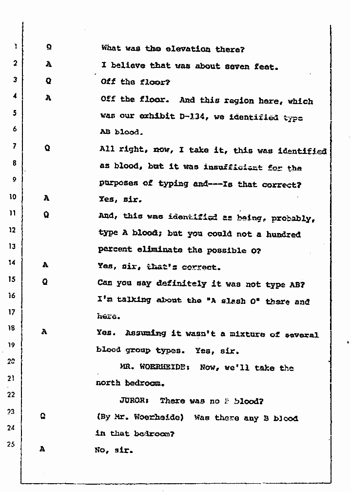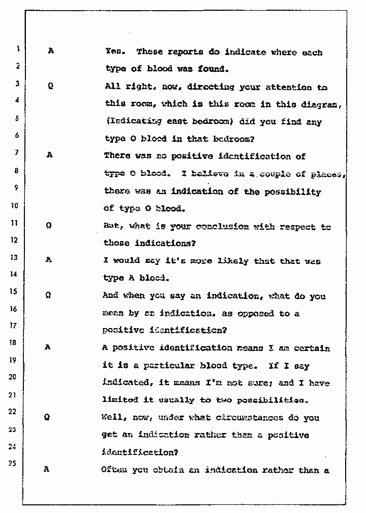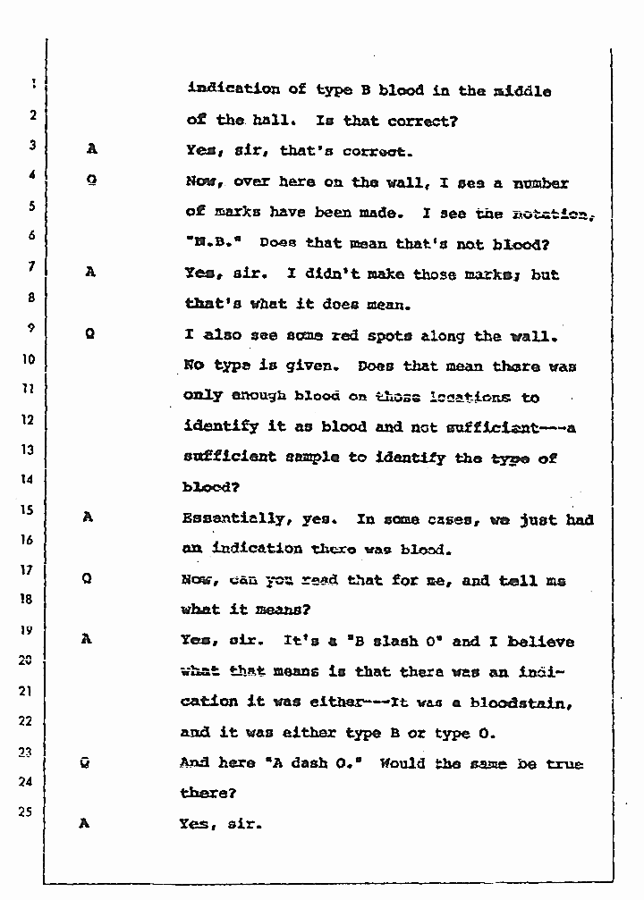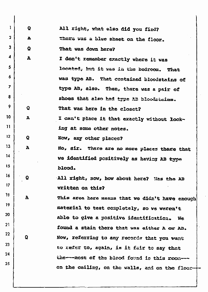 Q In addition to that, on the floor at various places, you have indications of both A and B blood. Is that correct?