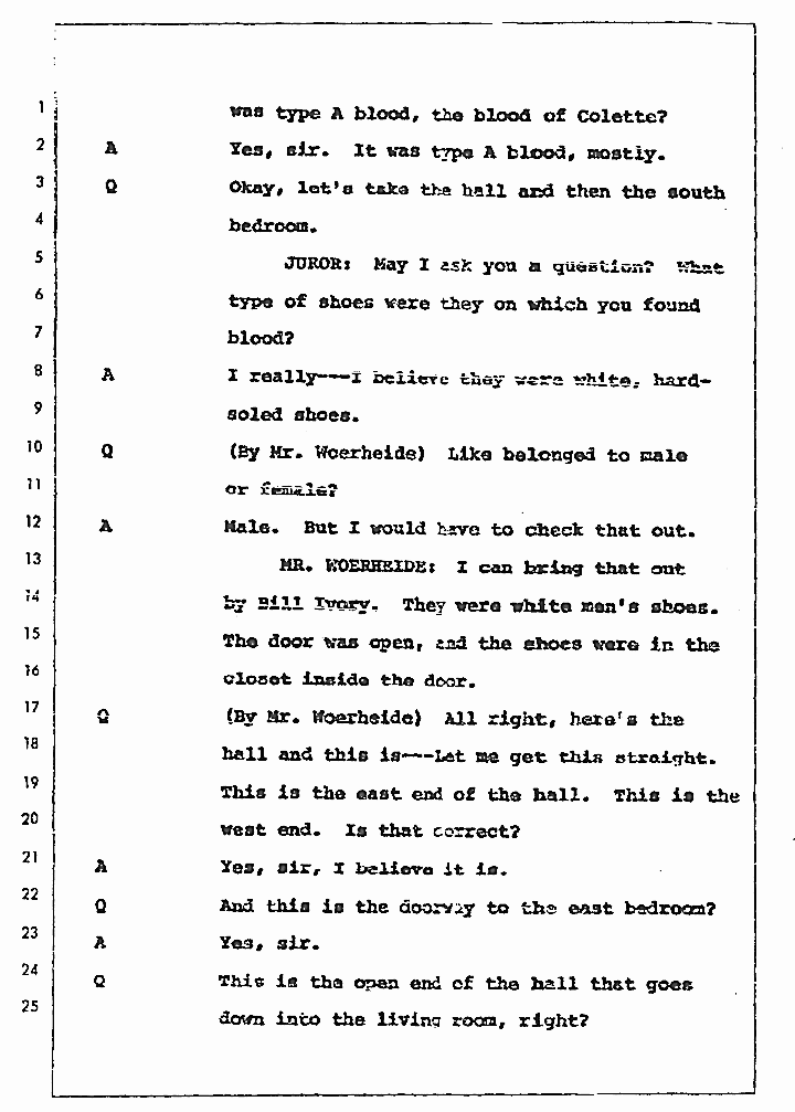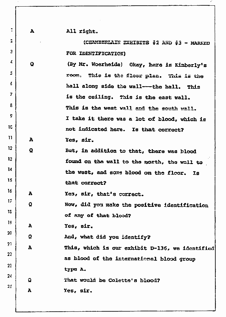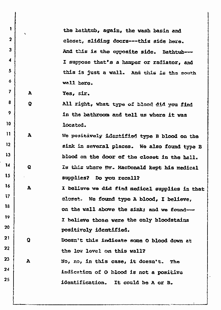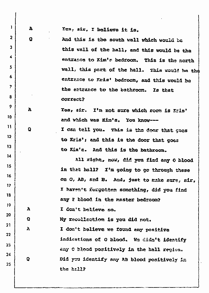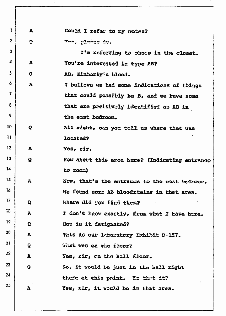 Q In addition to that, on the floor at various places, you have indications of both A and B blood. Is that correct?