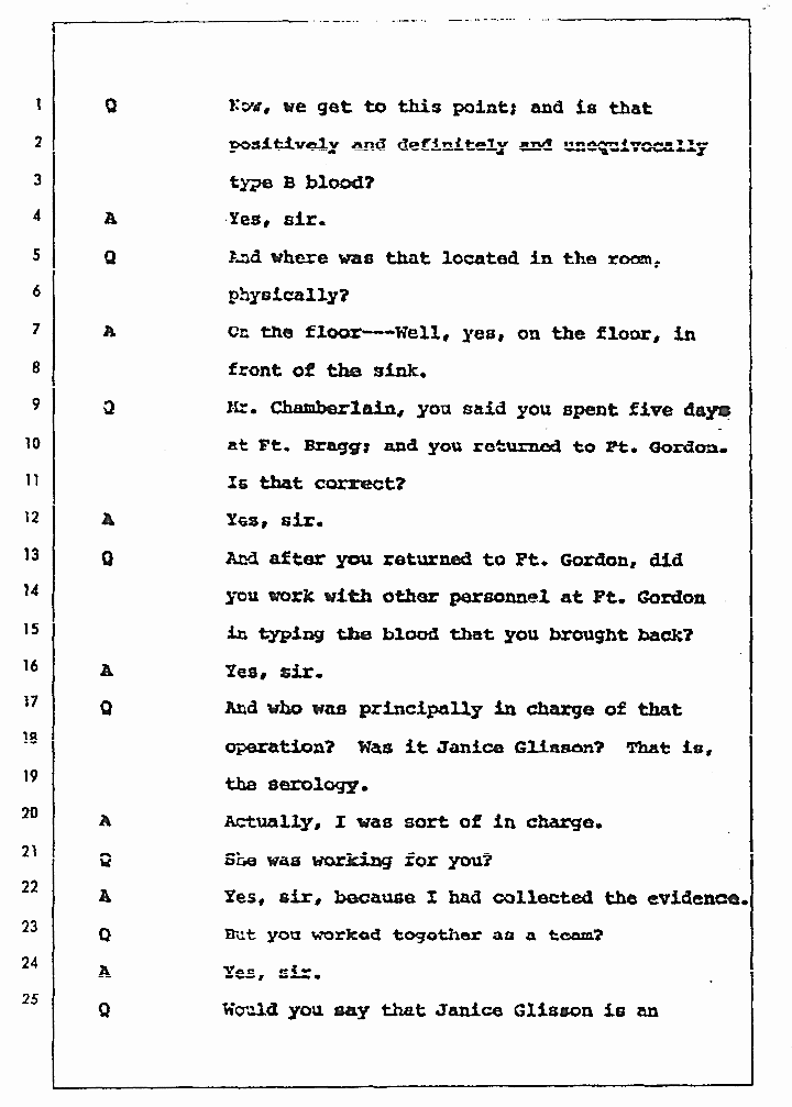 Q And after you returned to Ft. Gordon, did you work with other personnel at Ft. Gordon in typing the blood that you brought back?