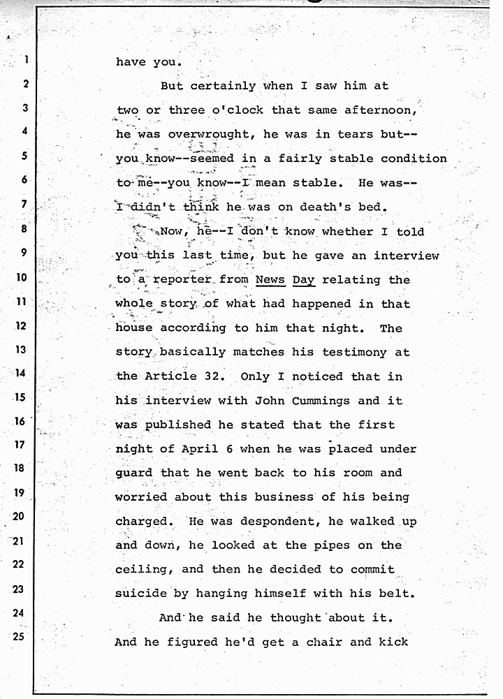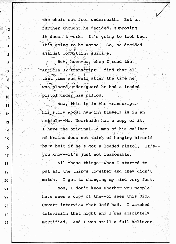 Now, Jeff was an avid reader of mystery stories. I would say he read an average of one or two or perhaps three mystery stories a week. And yet, he claimed that when Mr. Grebner, the C.I.D. commander at Ft. Bragg, read him his rights before questioning him -- I think it was on April 6 -- he said he didn't understand what that was all about.