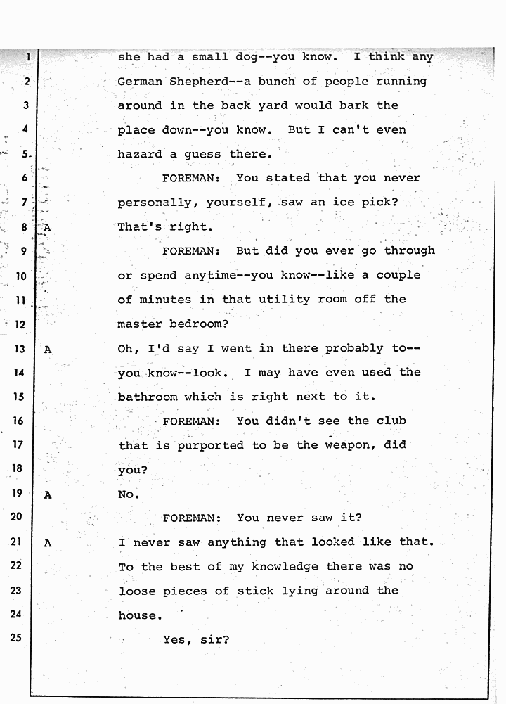 FOREMAN: You stated that you never personally, yourself, saw an ice pick?