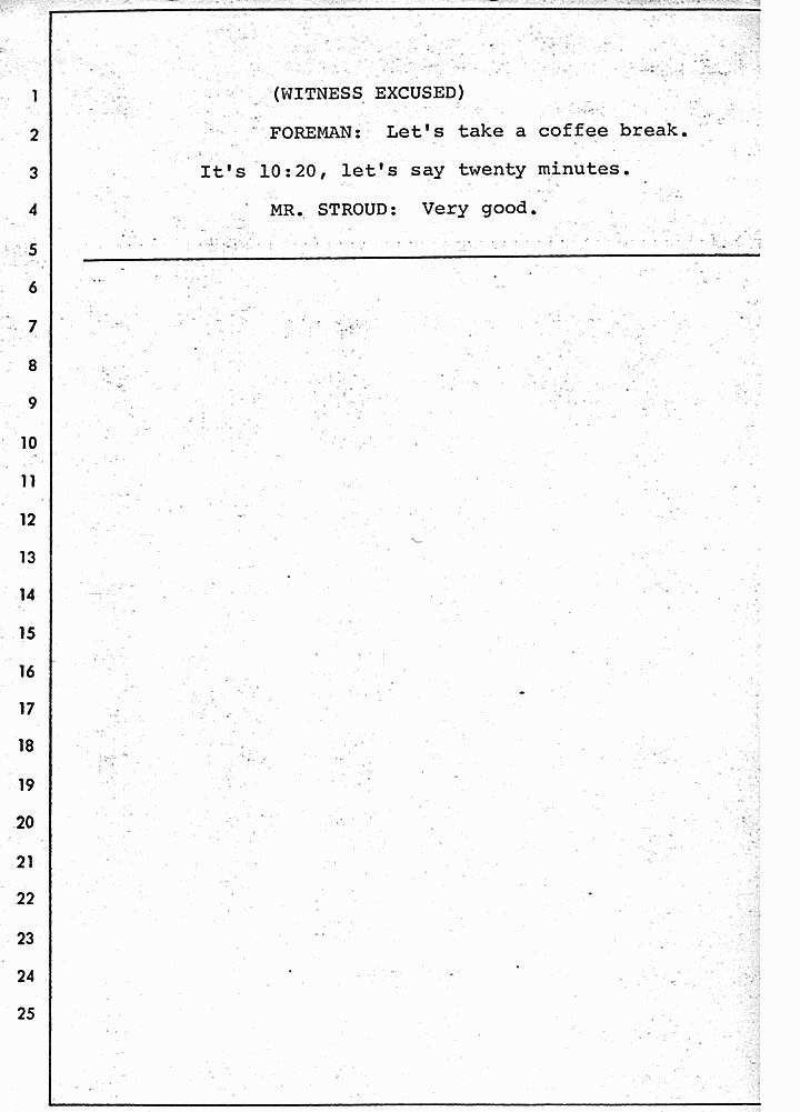 FOREMAN: Let's take a coffee break. It's 10:20, let's say twenty minutes.
