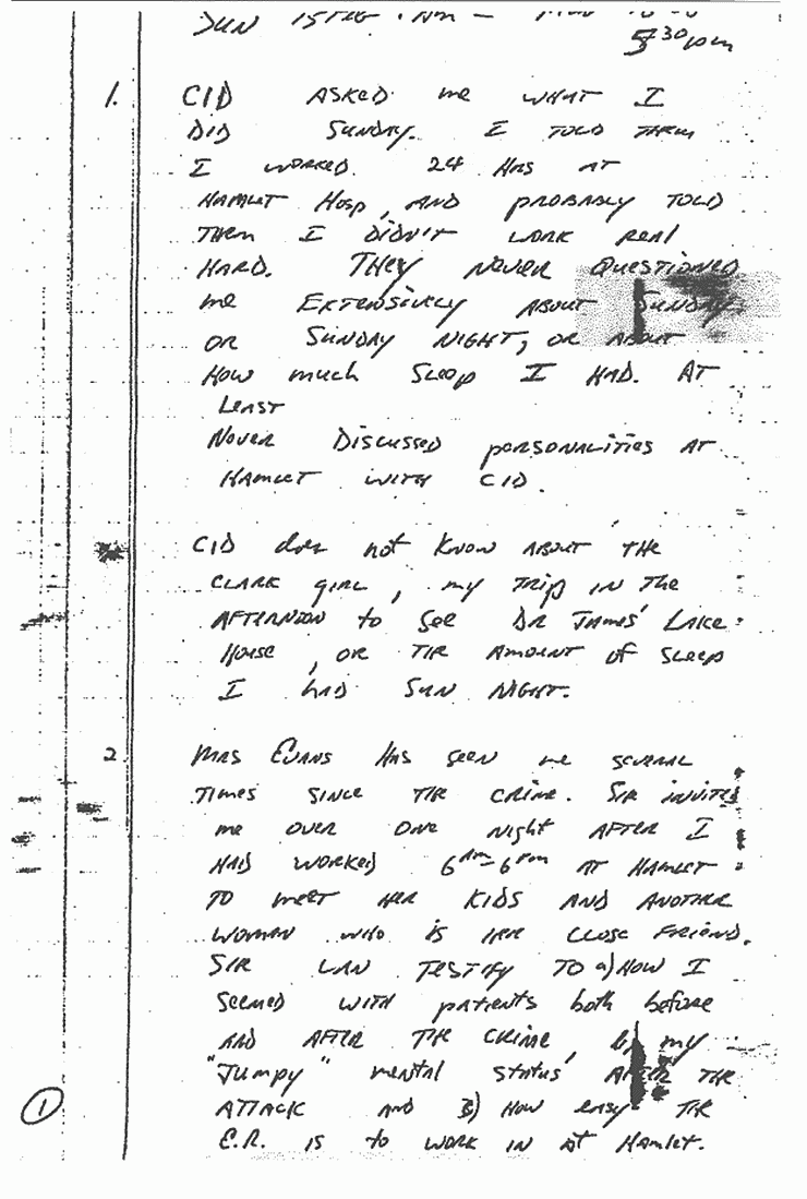 April 6-9, 1970: Jeffrey MacDonald's notes re: the CID, p. 1 of 9