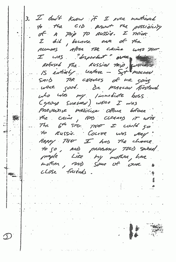 April 6-9, 1970: Jeffrey MacDonald's notes re: the CID, p. 3 of 9