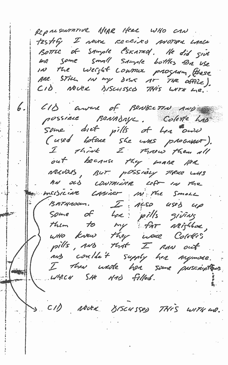 April 6-9, 1970: Jeffrey MacDonald's notes re: the CID, p. 6 of 9