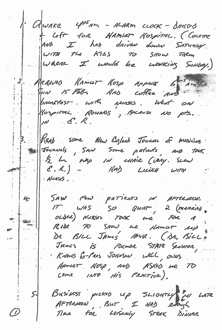April 6-9, 1970: Jeffrey MacDonald's notes re: Hamlet Hospital, p. 1 of 5