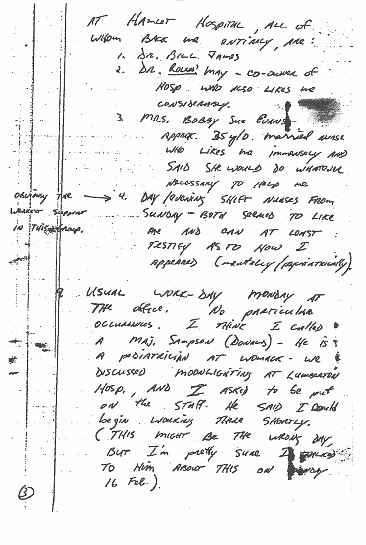 April 6-9, 1970: Jeffrey MacDonald's notes re: Hamlet Hospital, p. 3 of 5