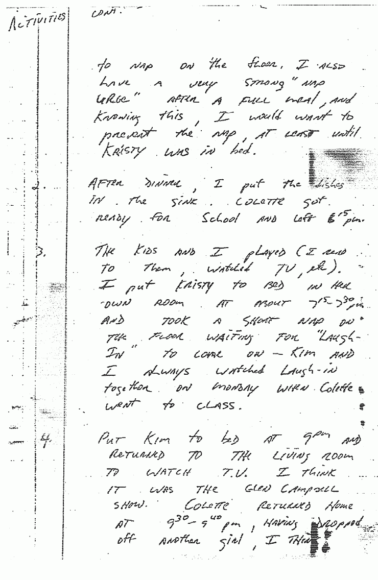 April 6-9, 1970: Jeffrey MacDonald's notes re: the night of the murders, p. 4 of 18
