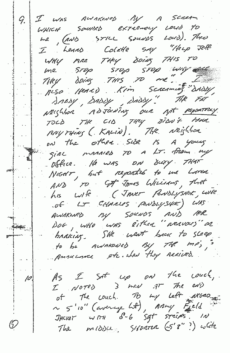 April 6-9, 1970: Jeffrey MacDonald's notes re: the night of the murders, p. 5 of 18