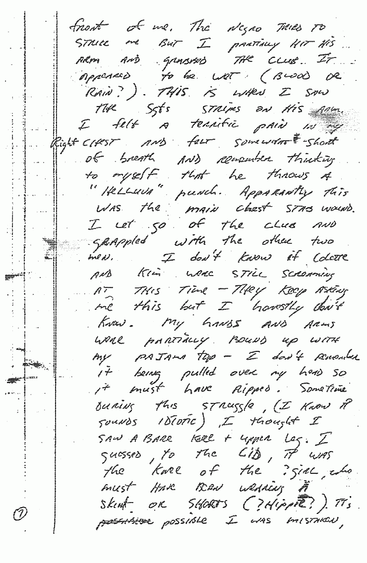 April 6-9, 1970: Jeffrey MacDonald's notes re: the night of the murders, p. 7 of 18
