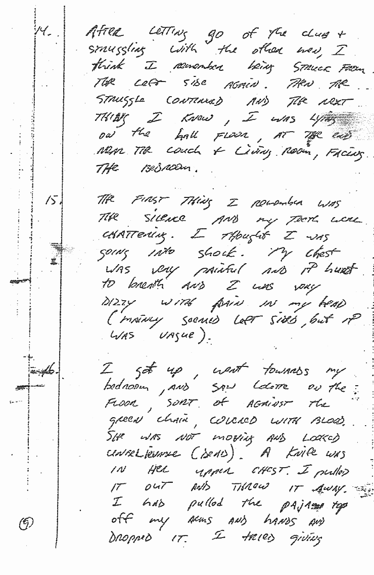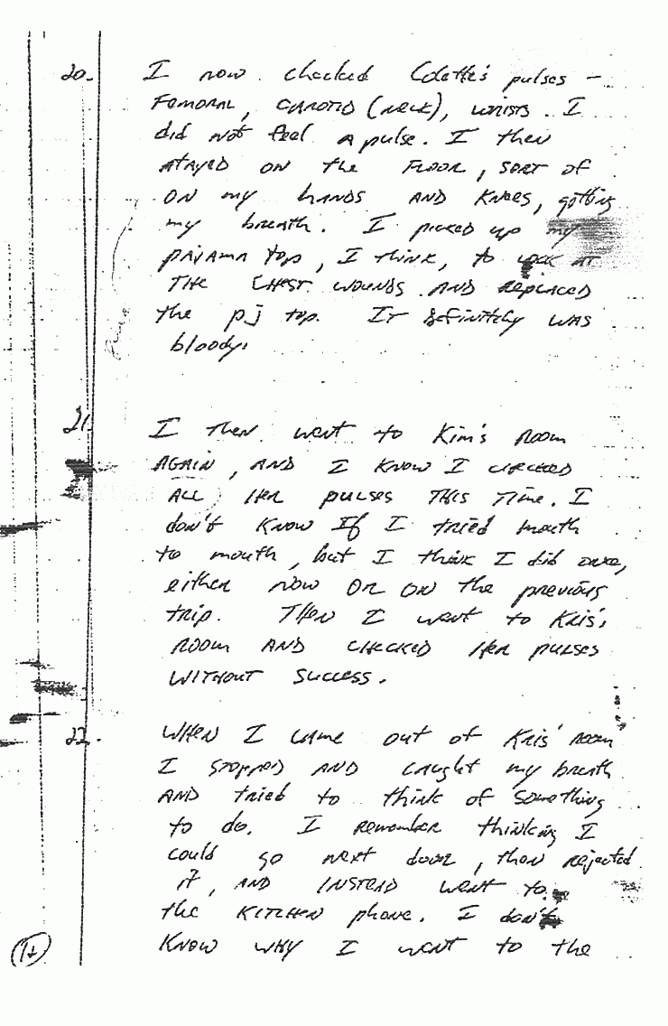 April 6-9, 1970: Jeffrey MacDonald's notes re: the night of the murders, p. 14 of 18