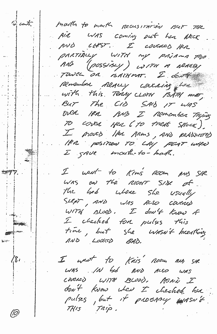 April 6-9, 1970: Jeffrey MacDonald's notes re: the night of the murders, p. 10 of 18