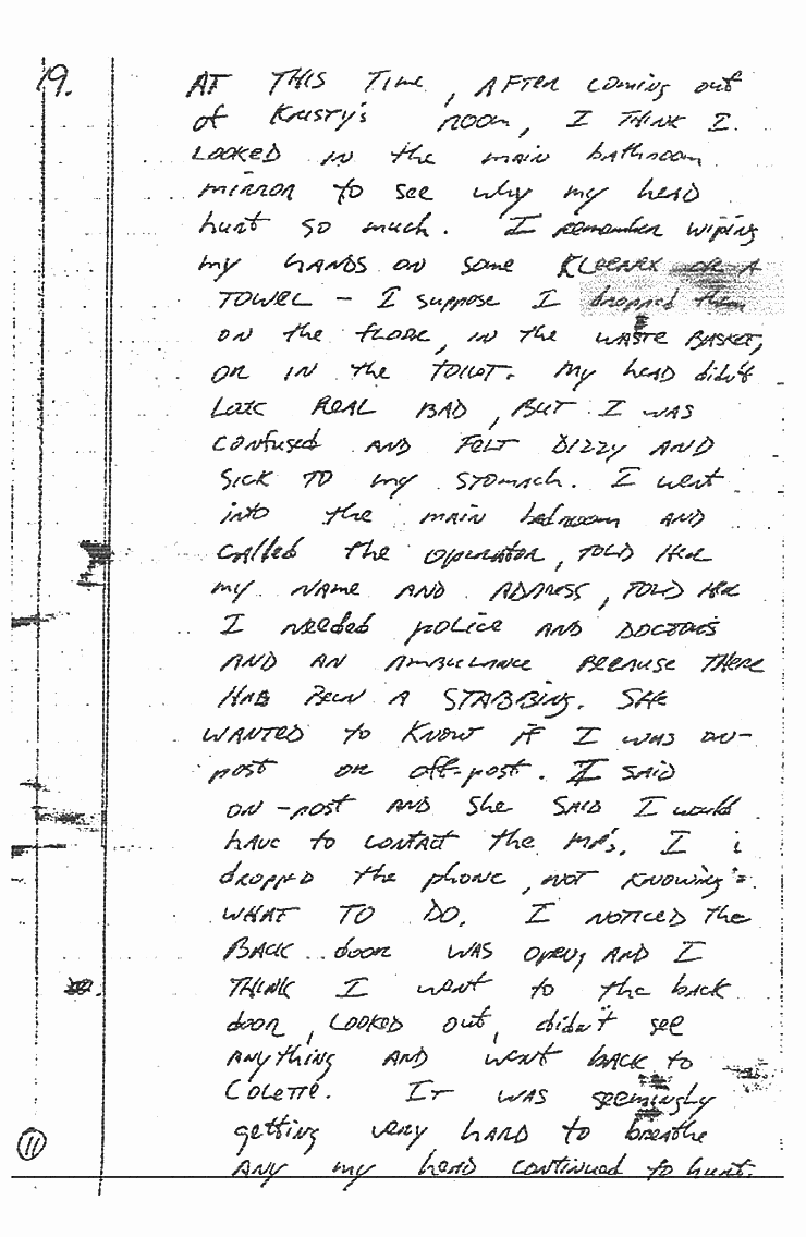April 6-9, 1970: Jeffrey MacDonald's notes re: the night of the murders, p. 11 of 18