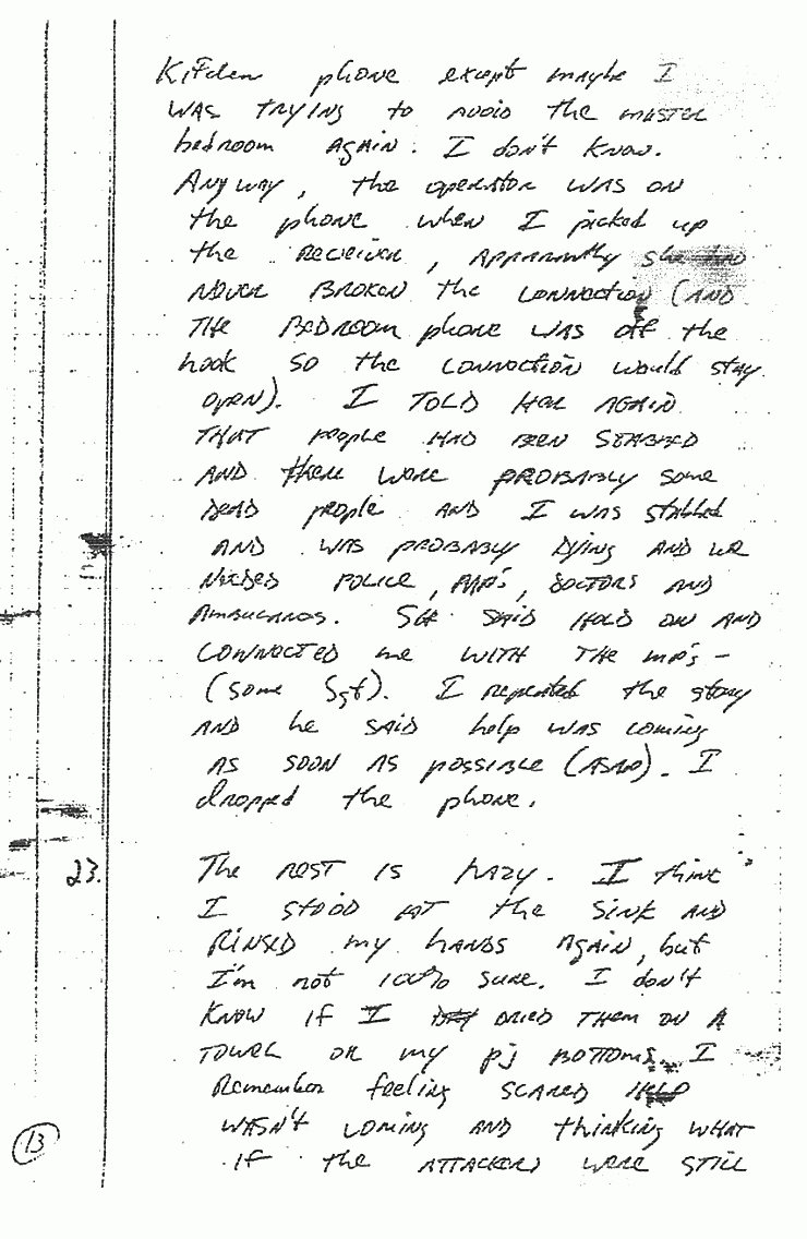 April 6-9, 1970: Jeffrey MacDonald's notes re: the night of the murders, p. 13 of 18