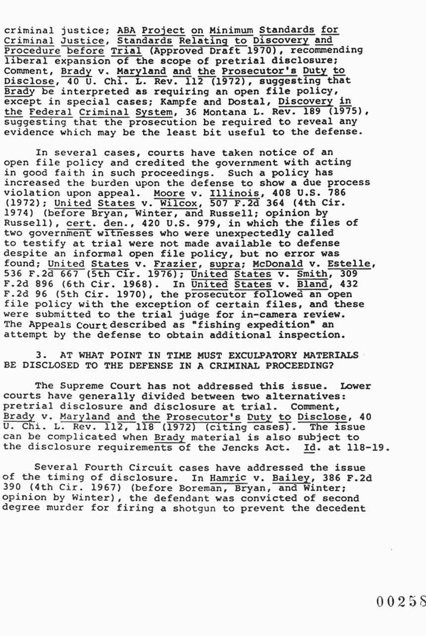 | RE: | The Prosecutor's Duty to Disclose Exculpatory Materials in the Fourth Circuit and Other Criminal Discovery Issues relating to United States v. MacDonald, CR-75-1870 |